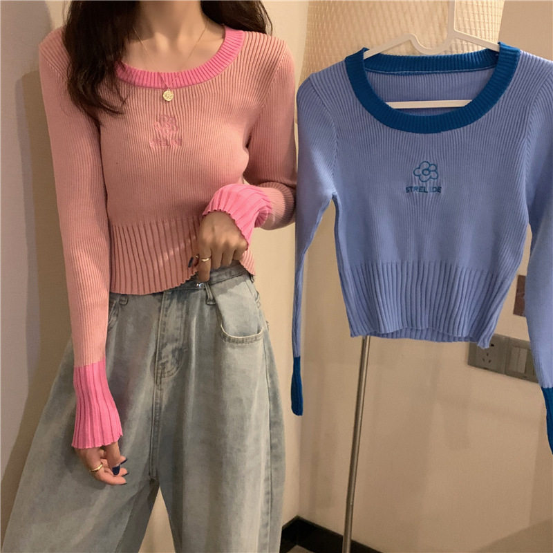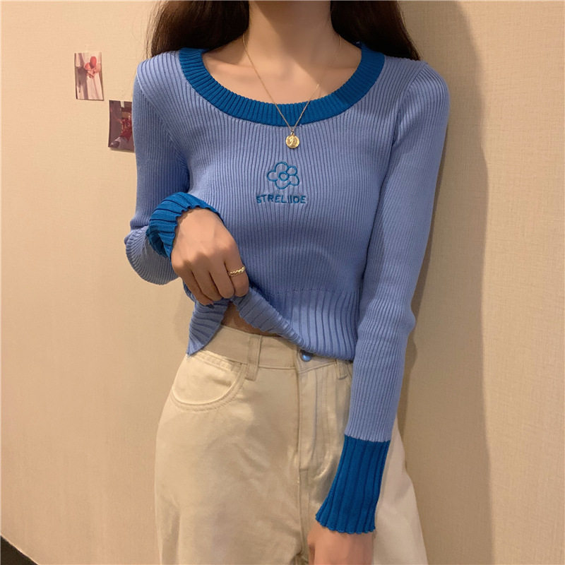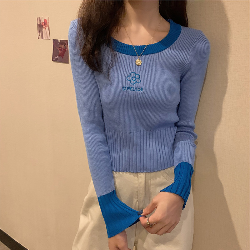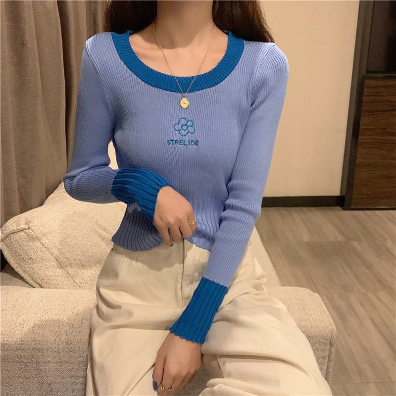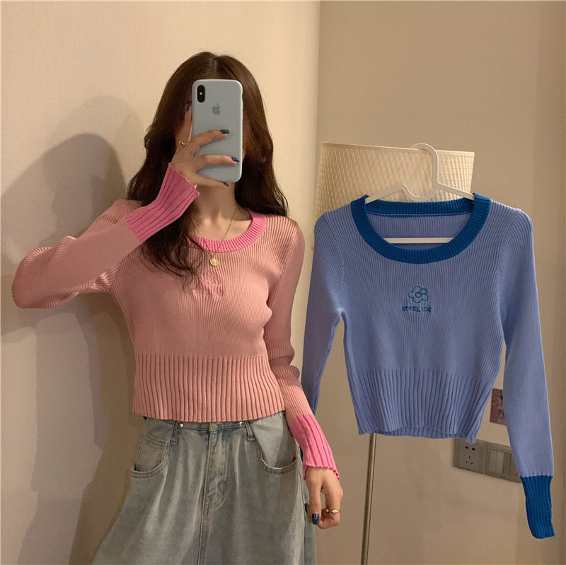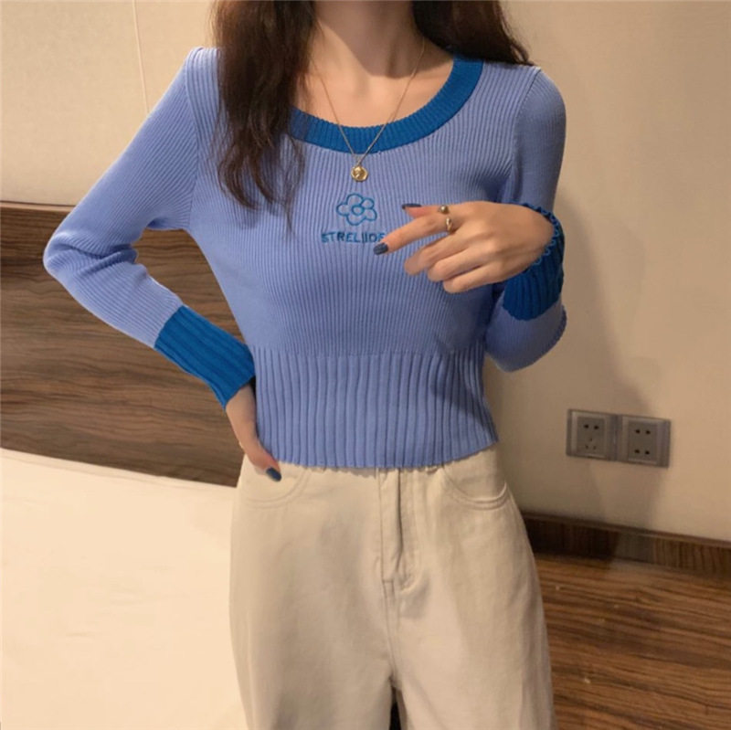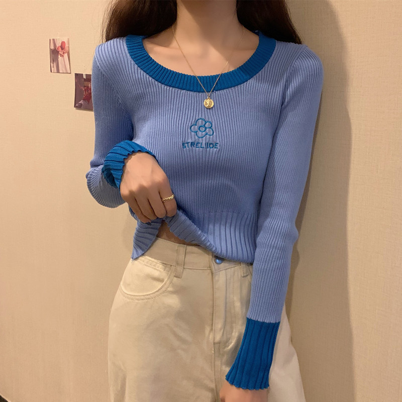Демисезонный приталенный трикотажный лонгслив, короткий базовый свитер, в западном стиле