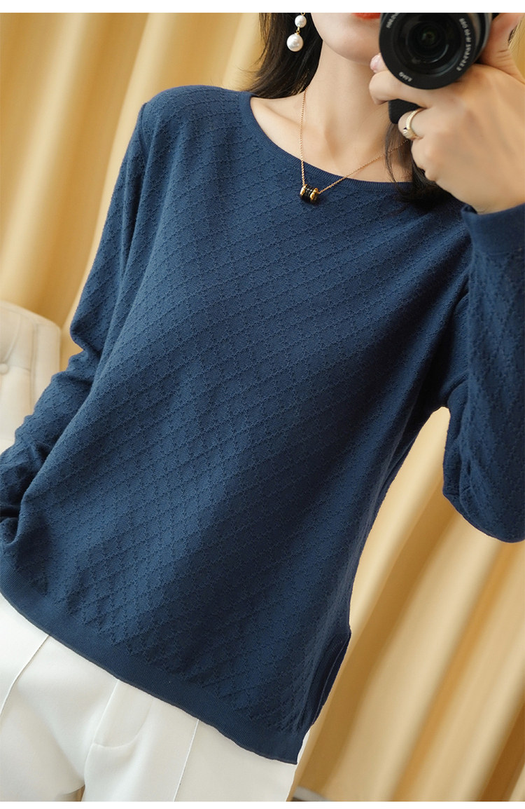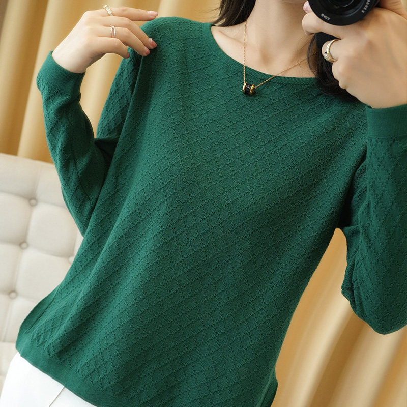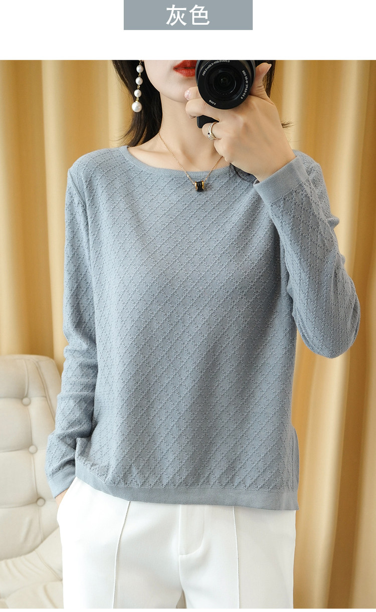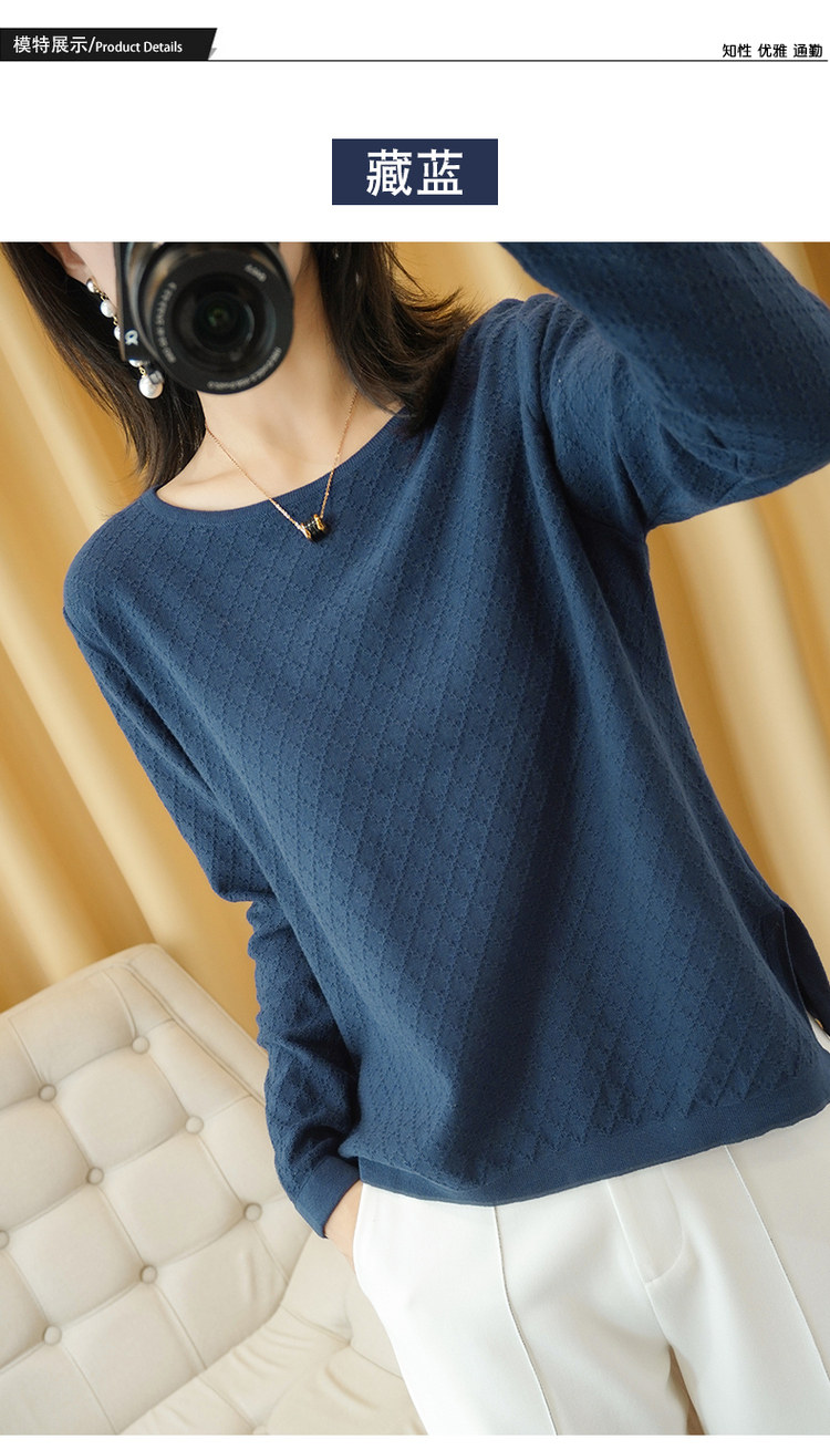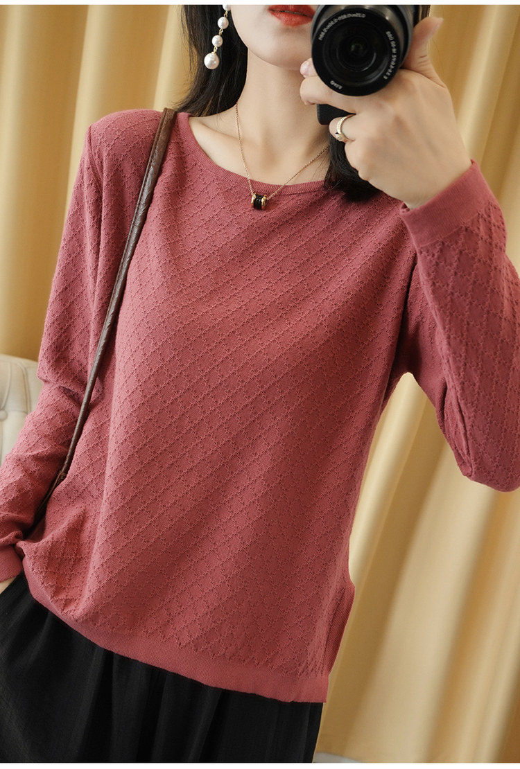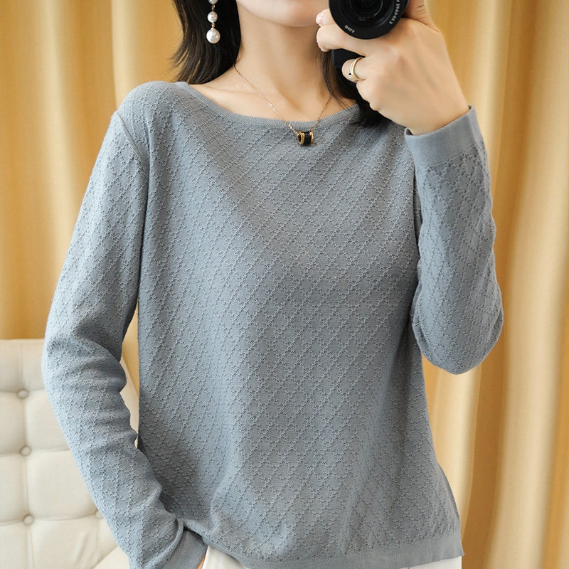 Осенний хлопковый трикотажный тонкий свитер, базовый лонгслив с круглым воротником, 100% хлопок