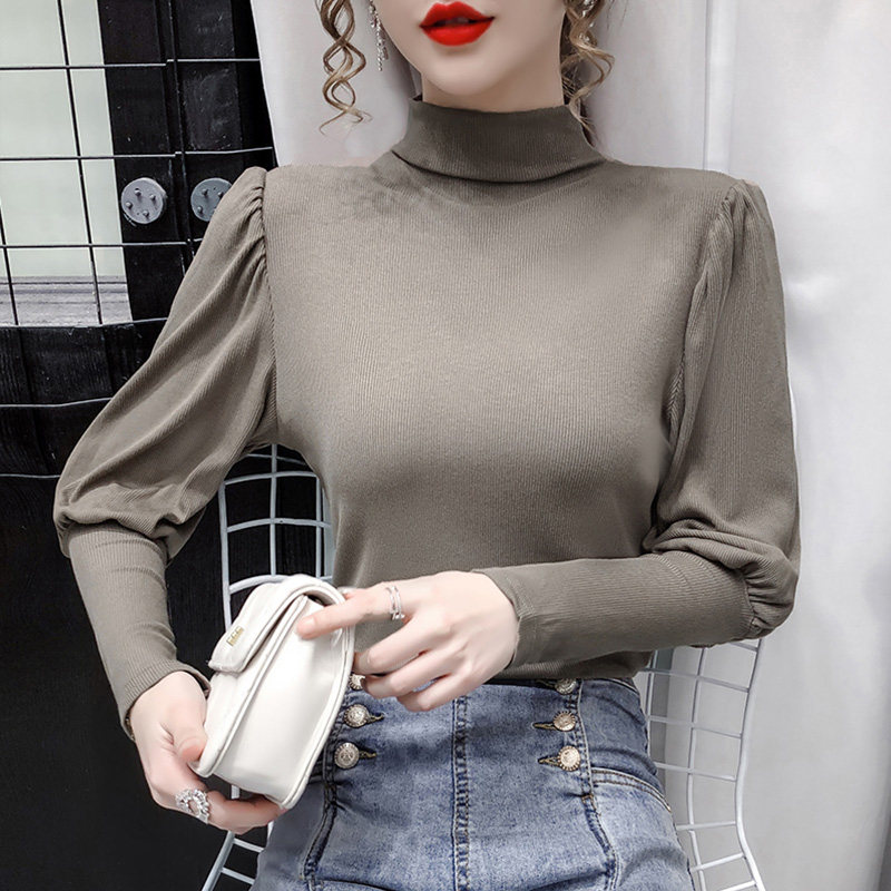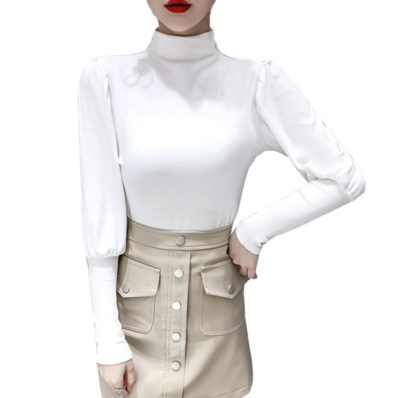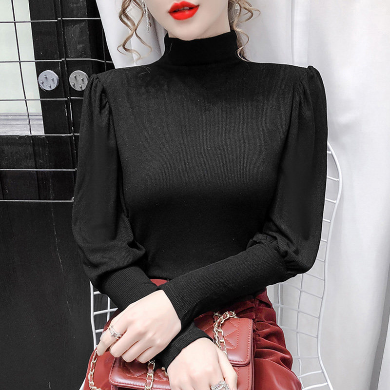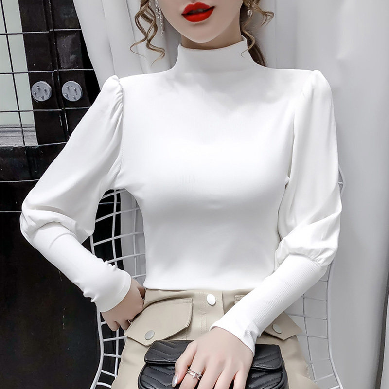 Трикотажная милая футболка, 2020 года, в корейском стиле, рукава фонарики
