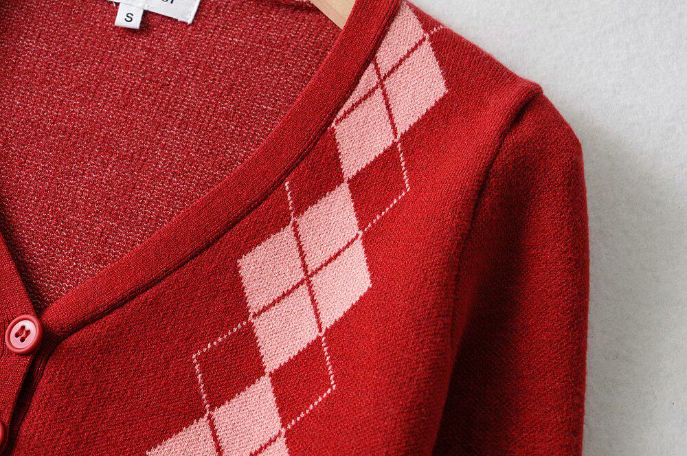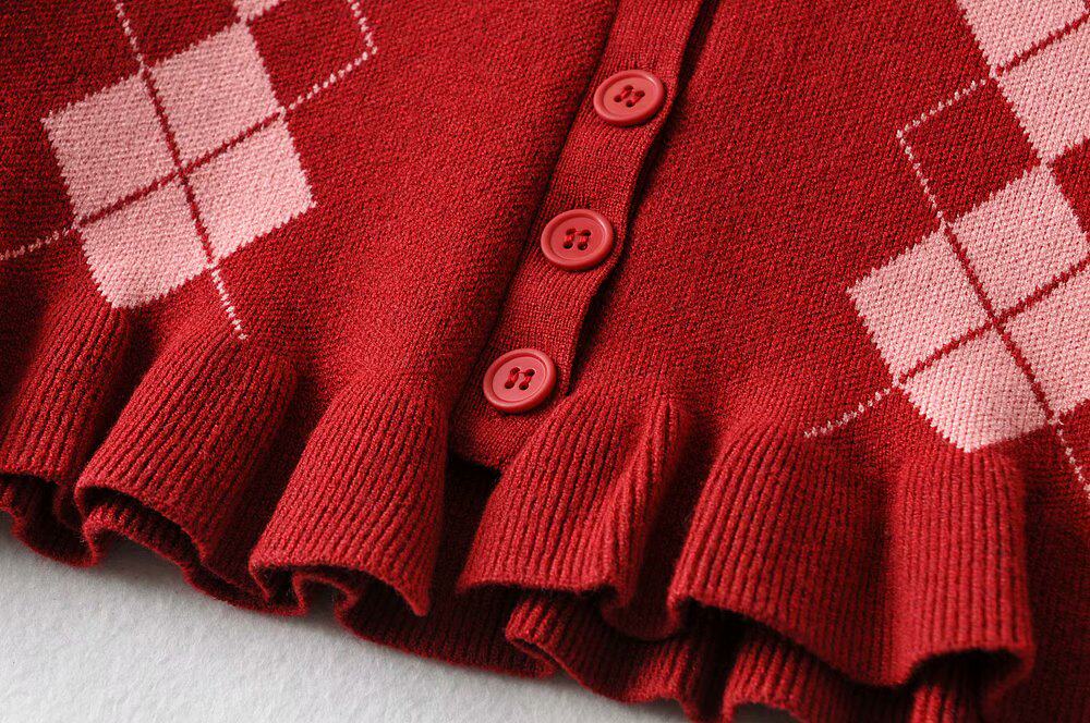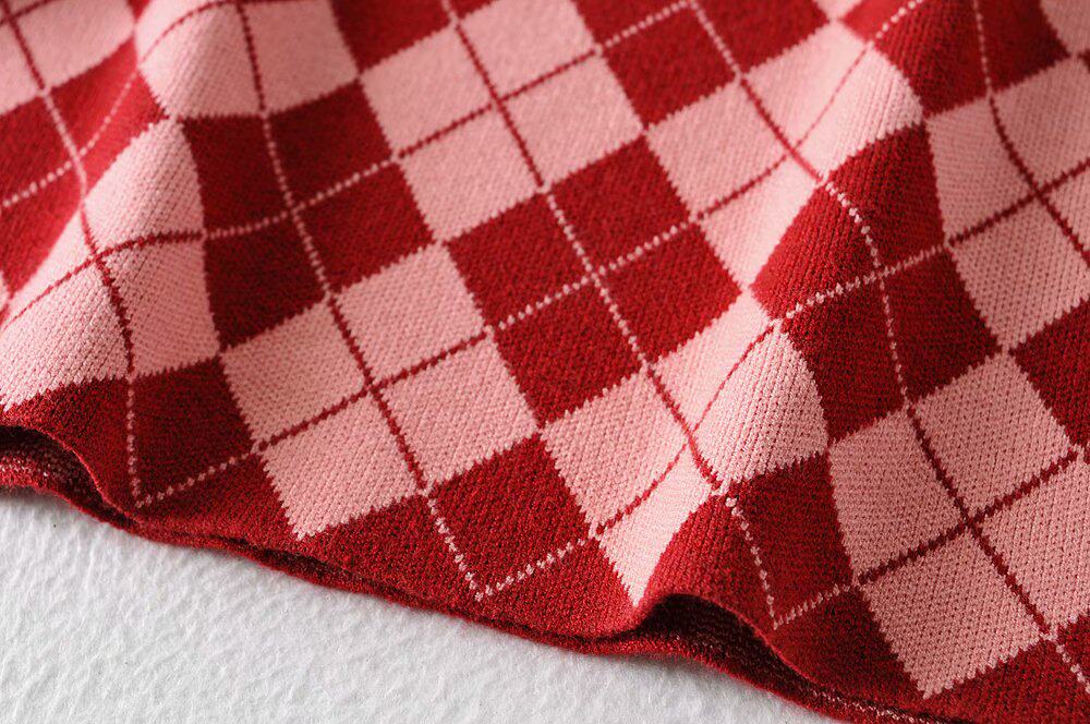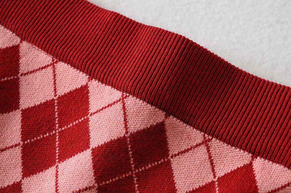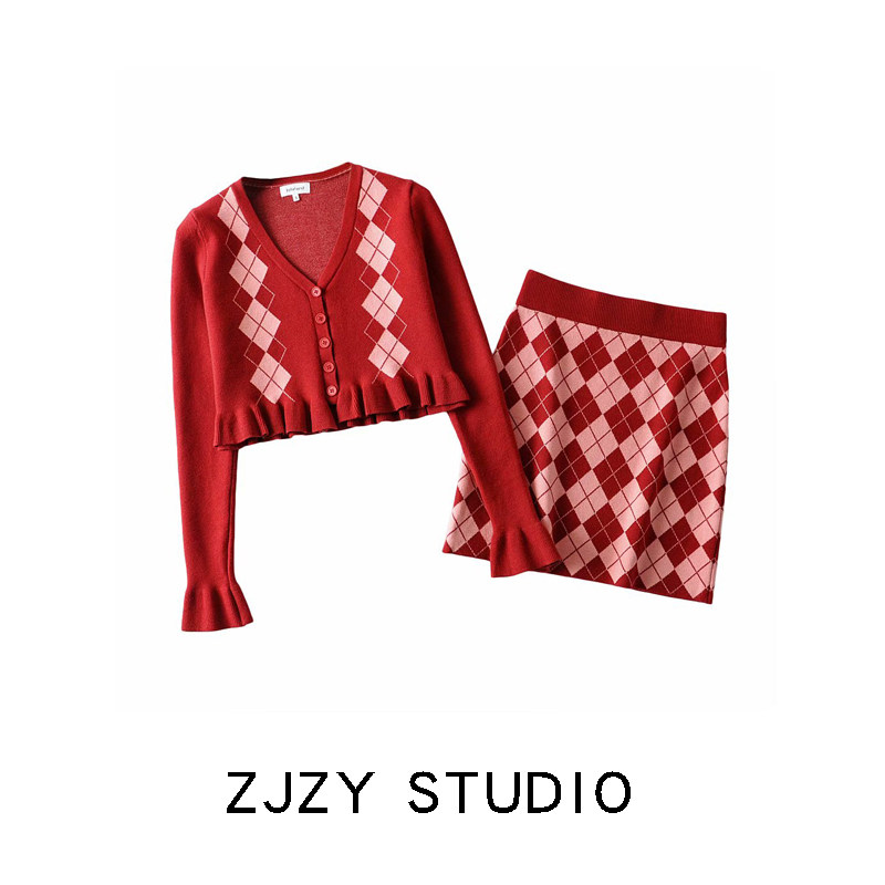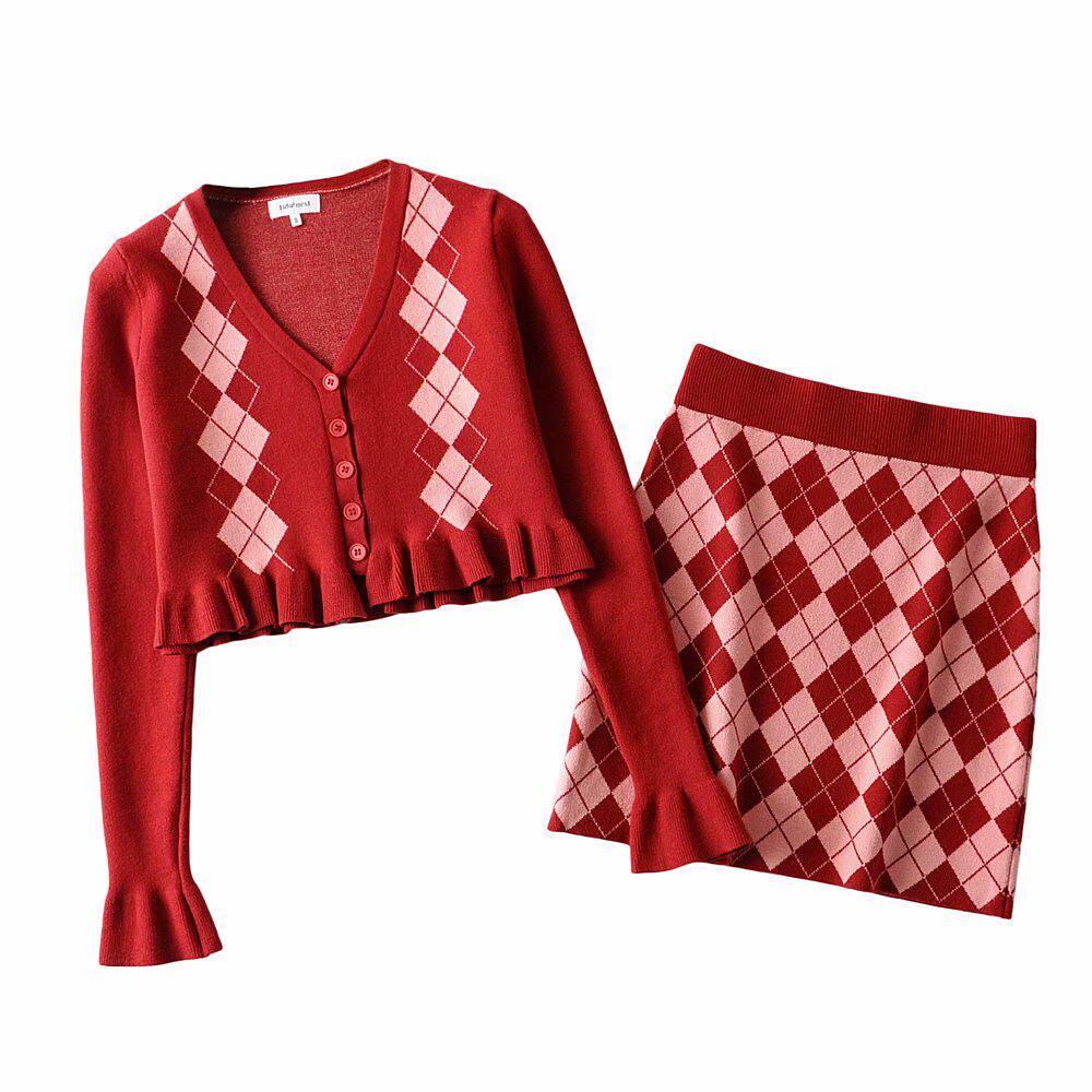 Демисезонный ретро трикотажный короткий кардиган с ромбовидным узором, юбка, европейский стиль