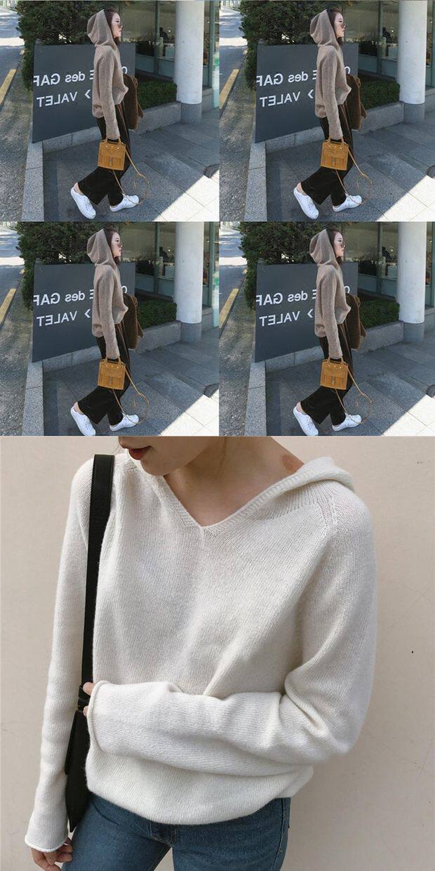 Осенняя трикотажная толстовка с капюшоном, свитер, короткий лонгслив, комплект, базовая куртка, 2023, оверсайз