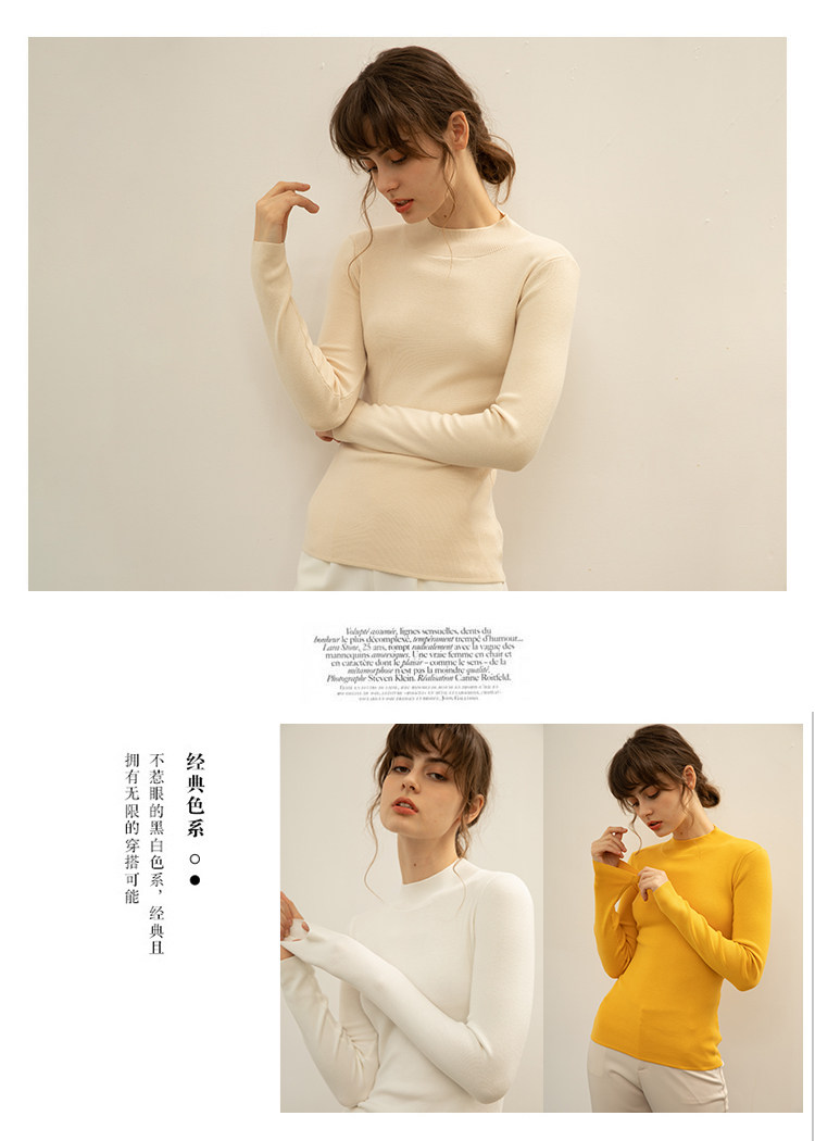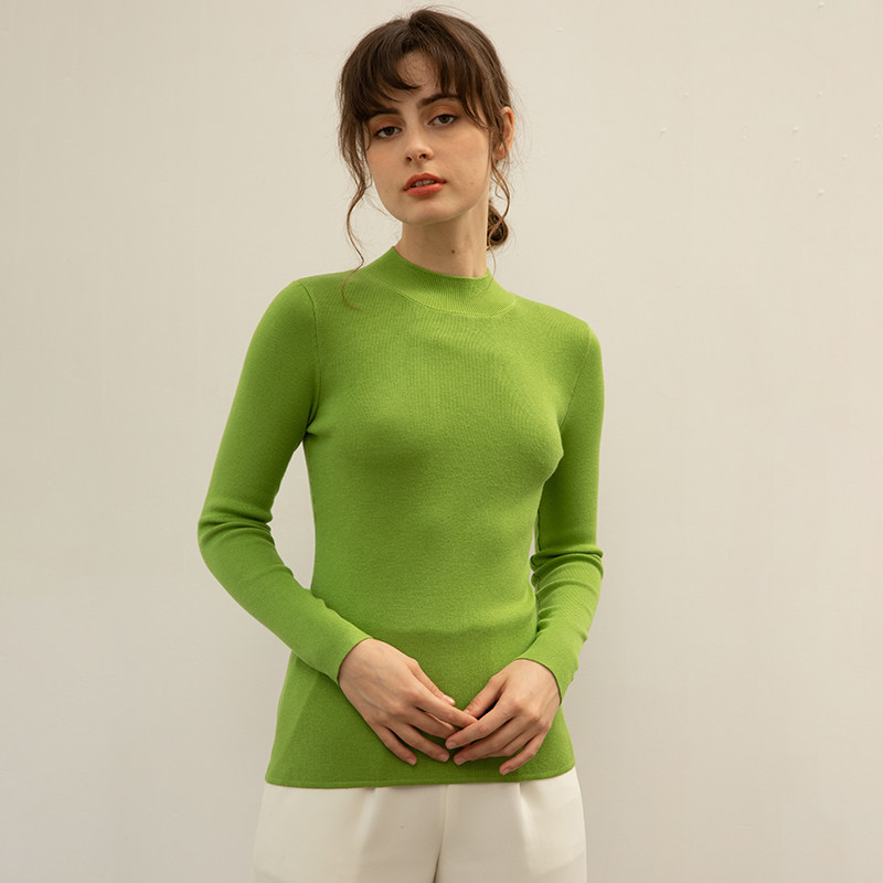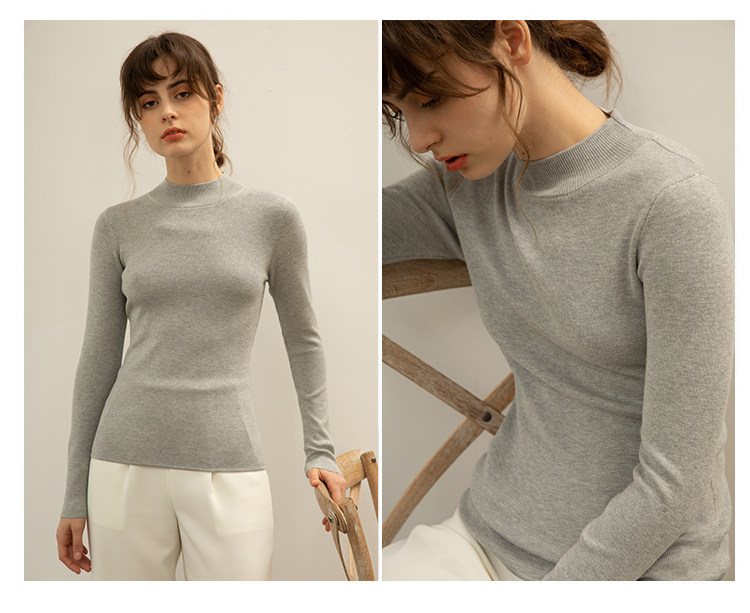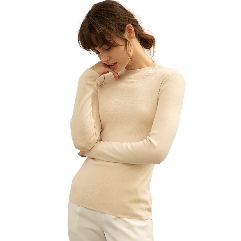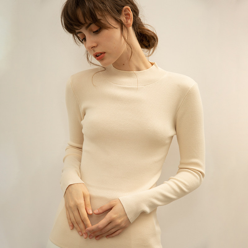 Демисезонный шерстяной трикотажный свитер, хлопковый короткий лонгслив, комплект, высокий воротник, облегающий крой