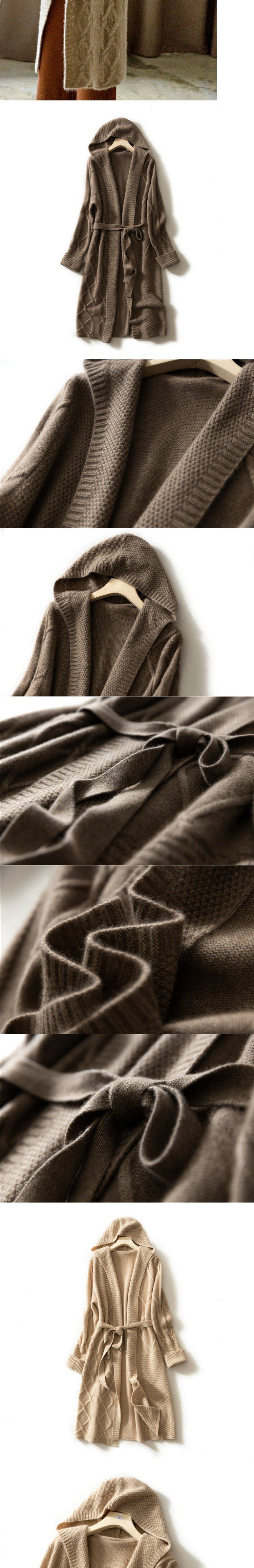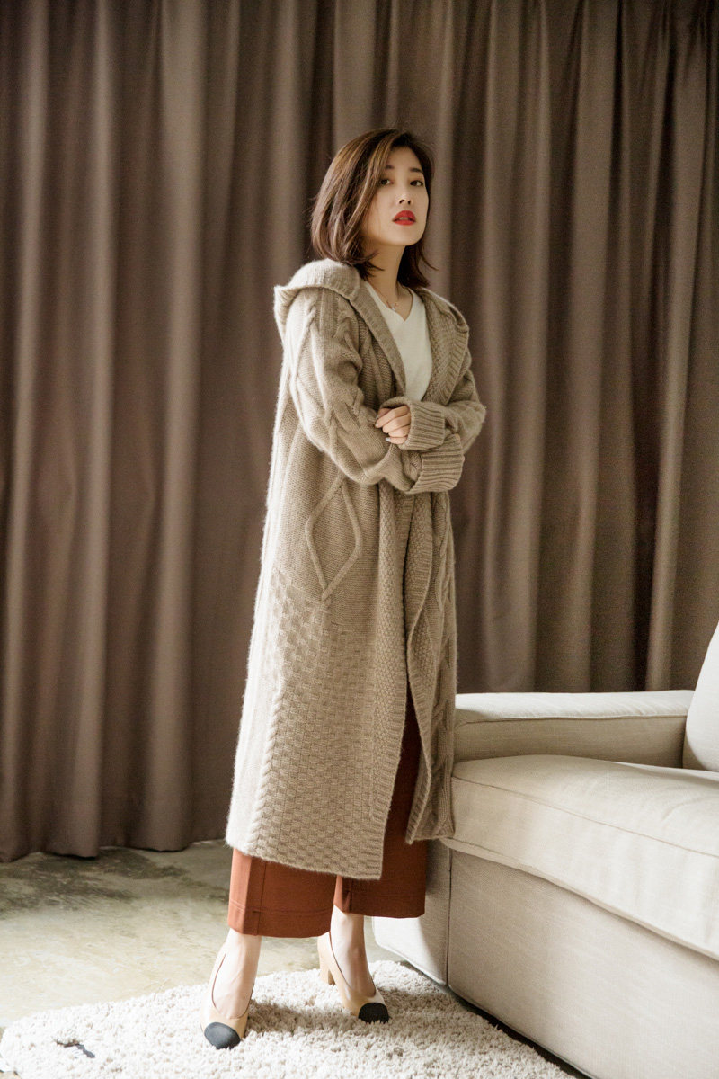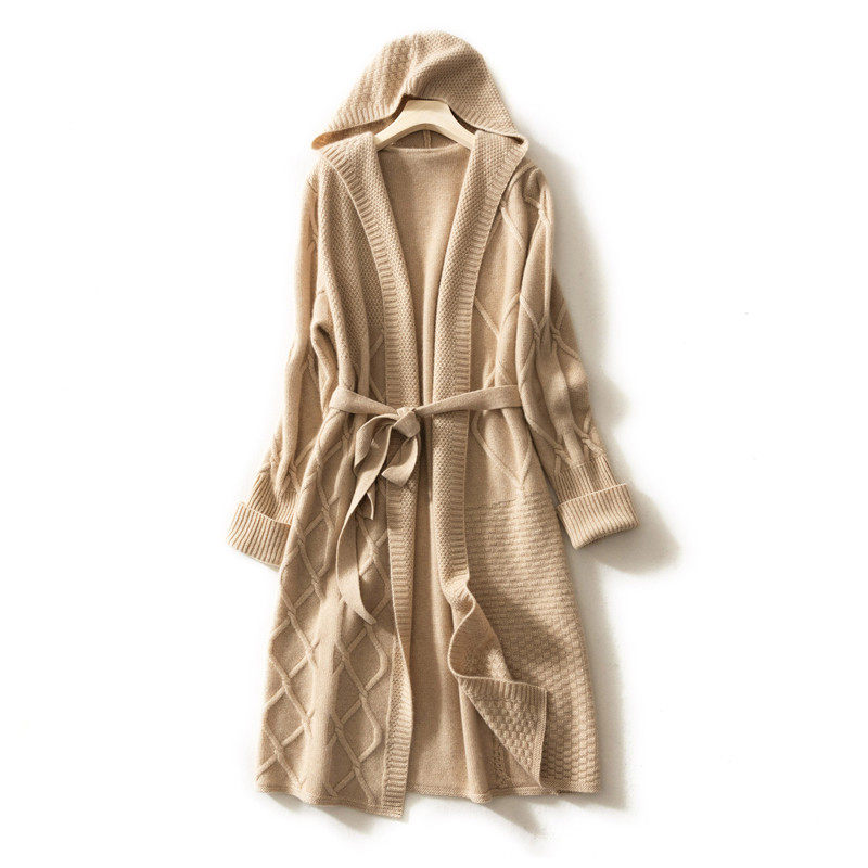 Цветной кашемировый длинный кардиган, трикотажная толстовка с капюшоном, пальто, средней длины, увеличенная толщина