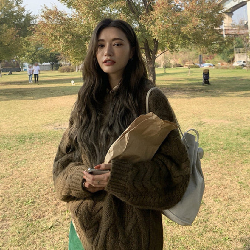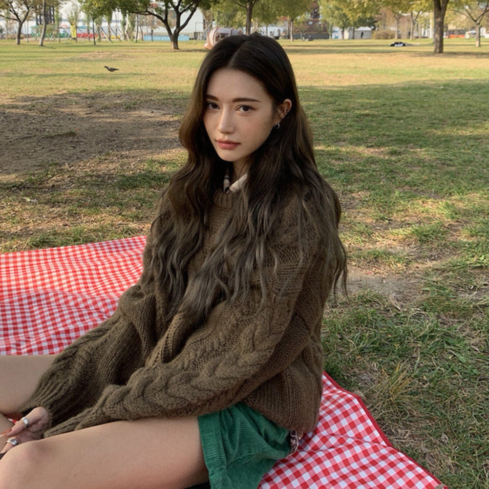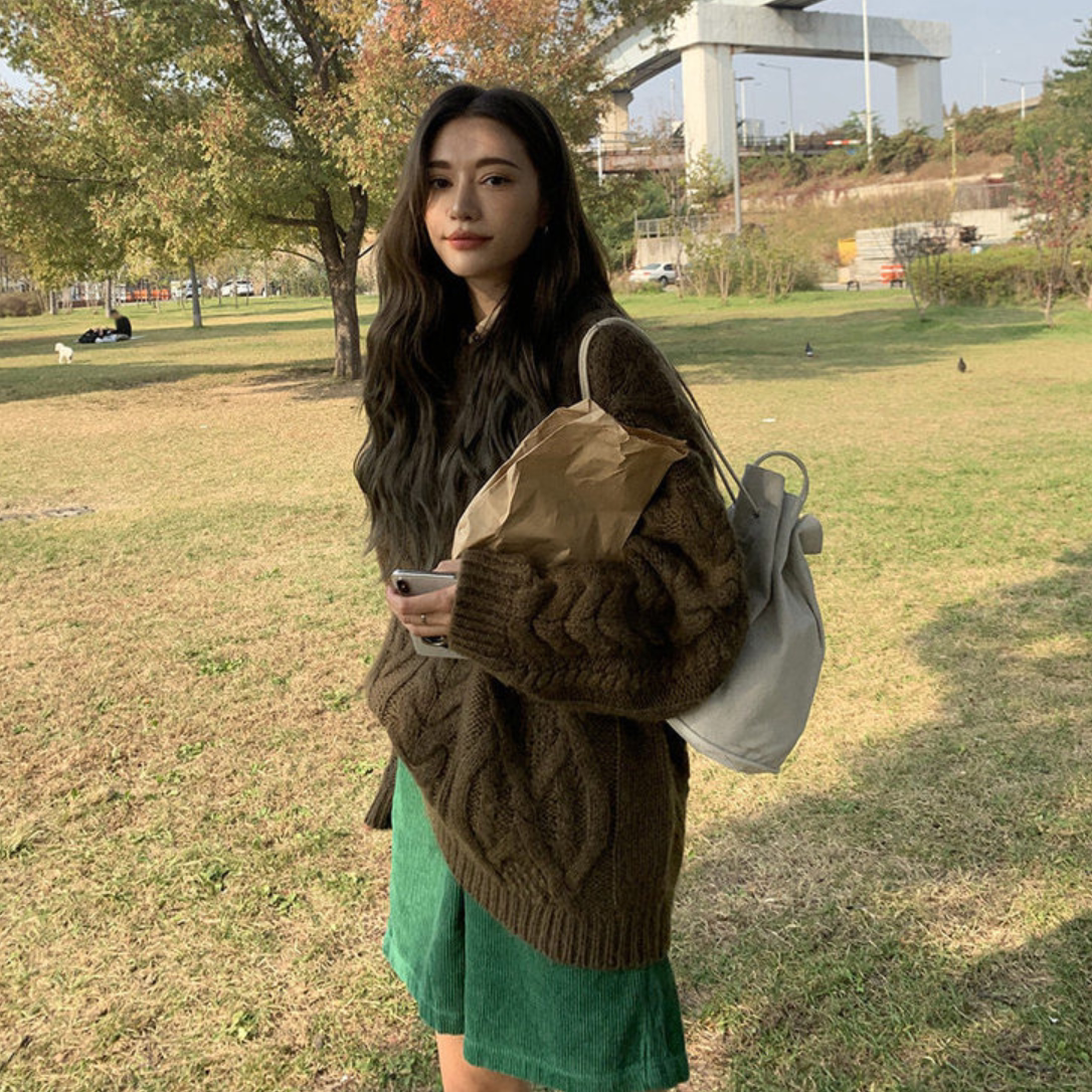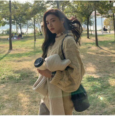 Субсидируемая Nanda sn Южная Корея приобрела 21 зимние новые грубые линии, покалывание, свободный свитер плеча