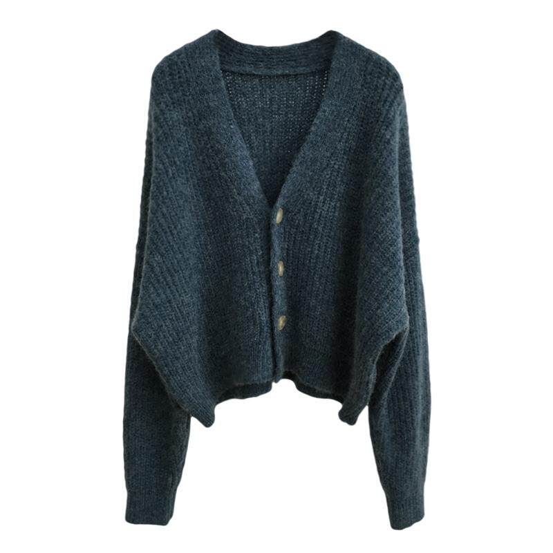 Демисезонный короткий свитер, кардиган, куртка, трикотажный лонгслив, V-образный вырез, оверсайз, увеличенная толщина, 2023, в корейском стиле