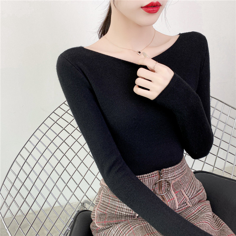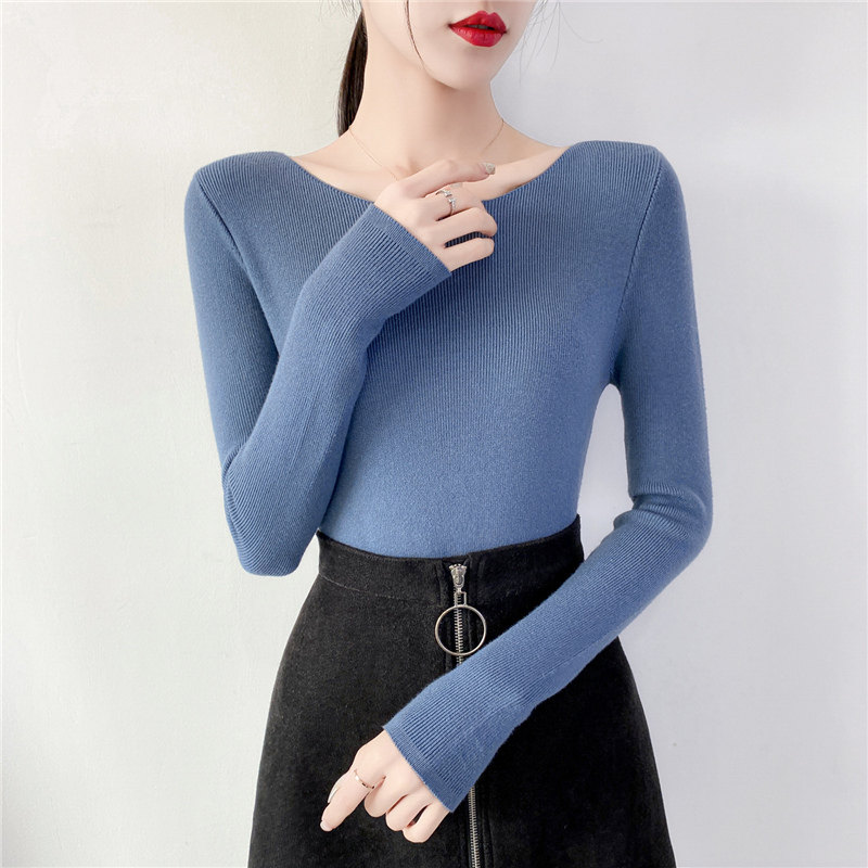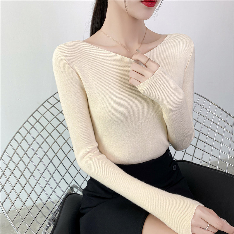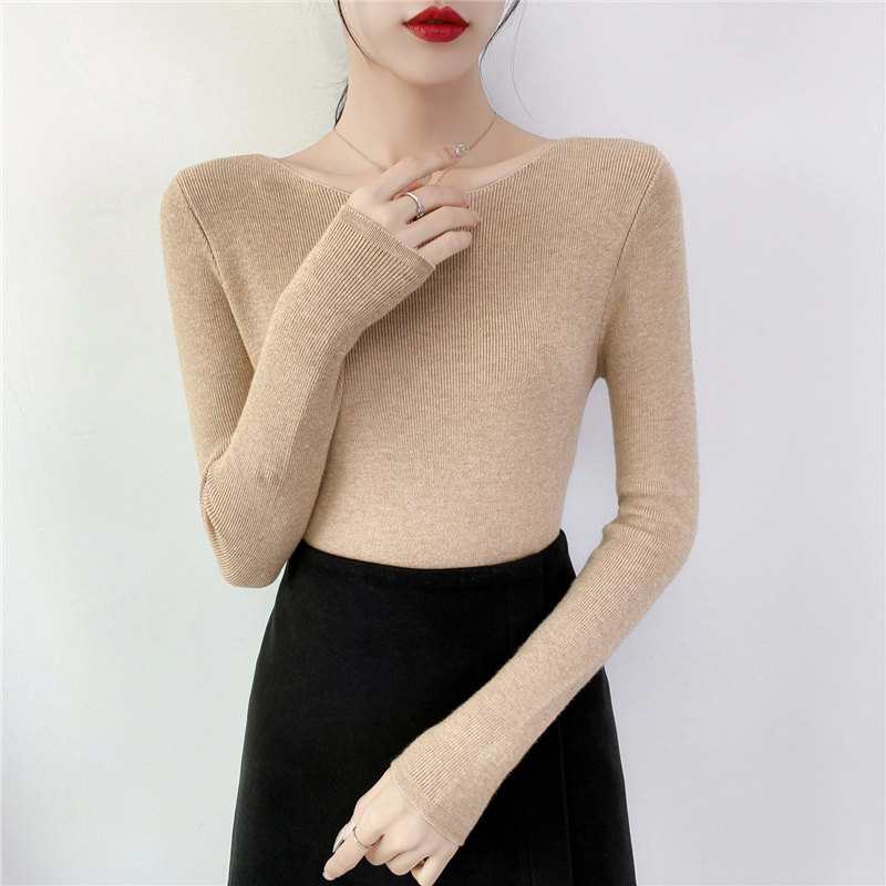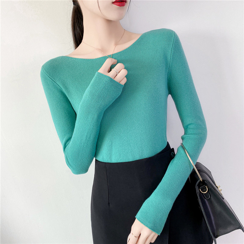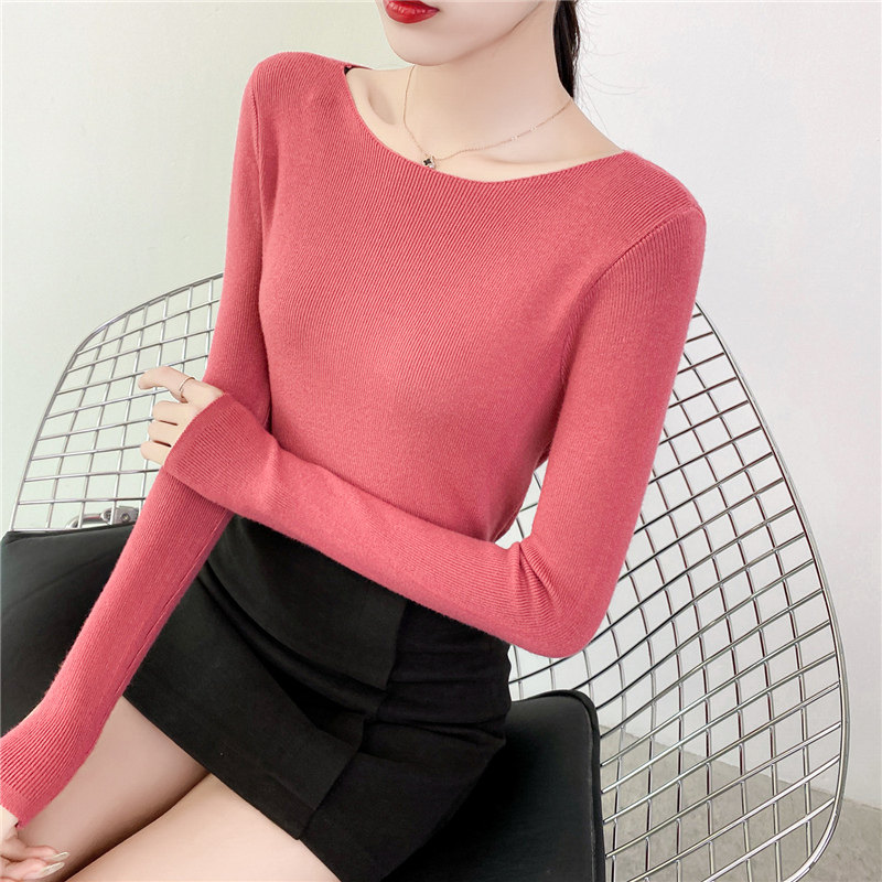 Демисезонный трикотажный лонгслив, свитер, облегающий крой, в западном стиле, открытые плечи