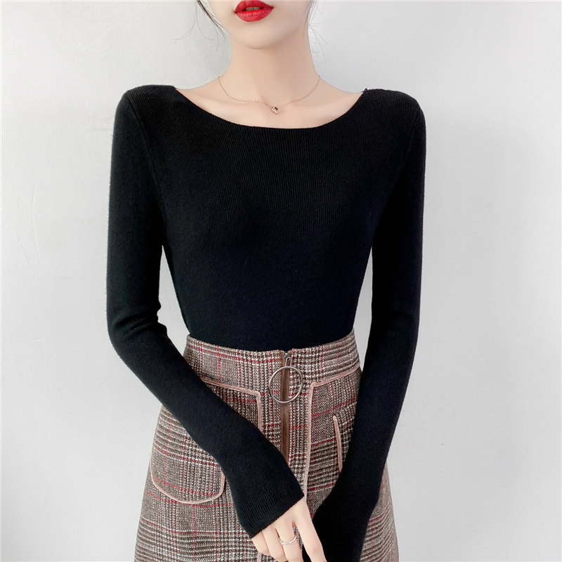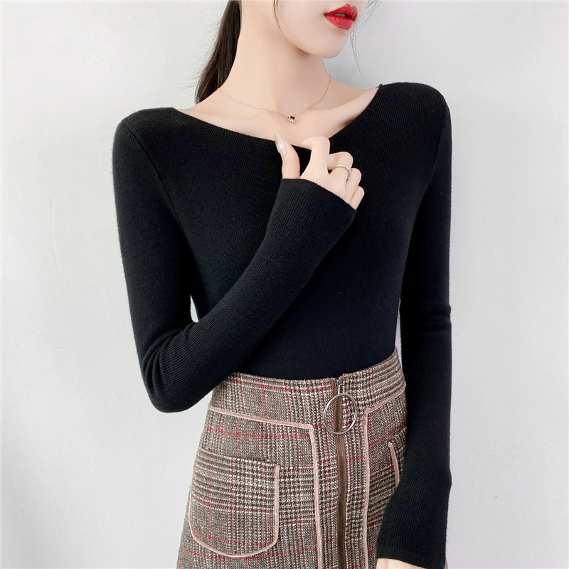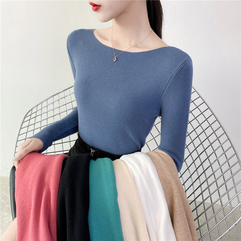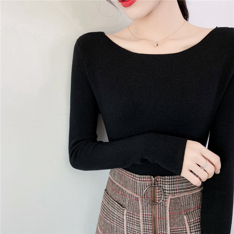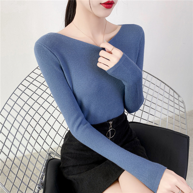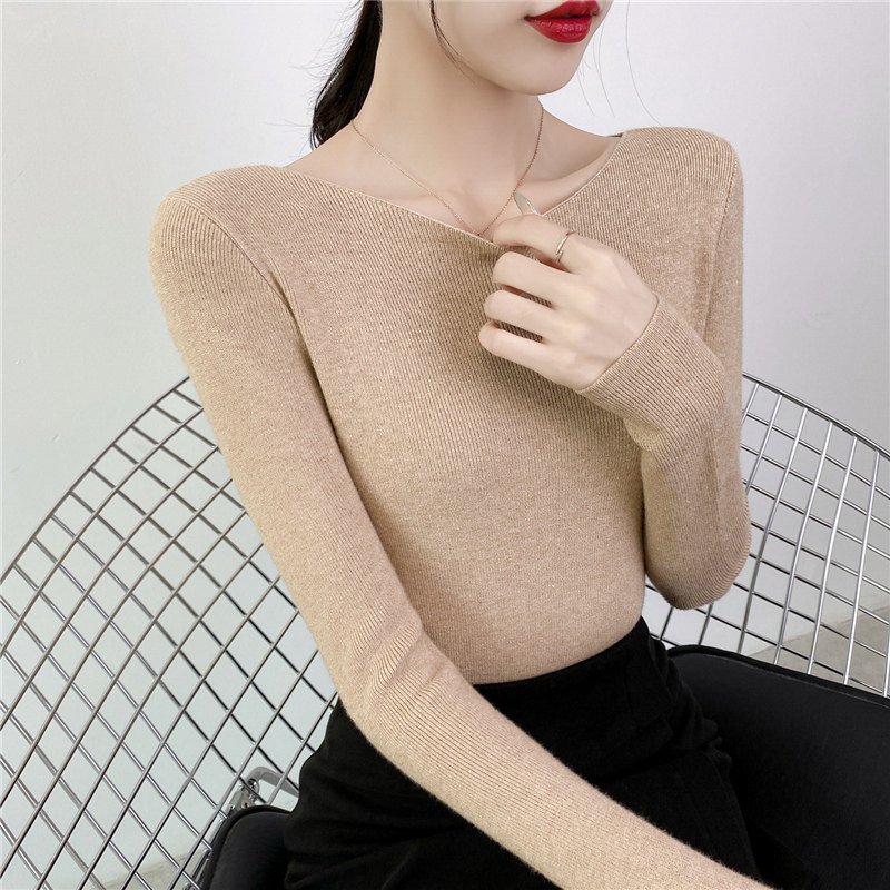Демисезонный трикотажный лонгслив, свитер, облегающий крой, в западном стиле, открытые плечи