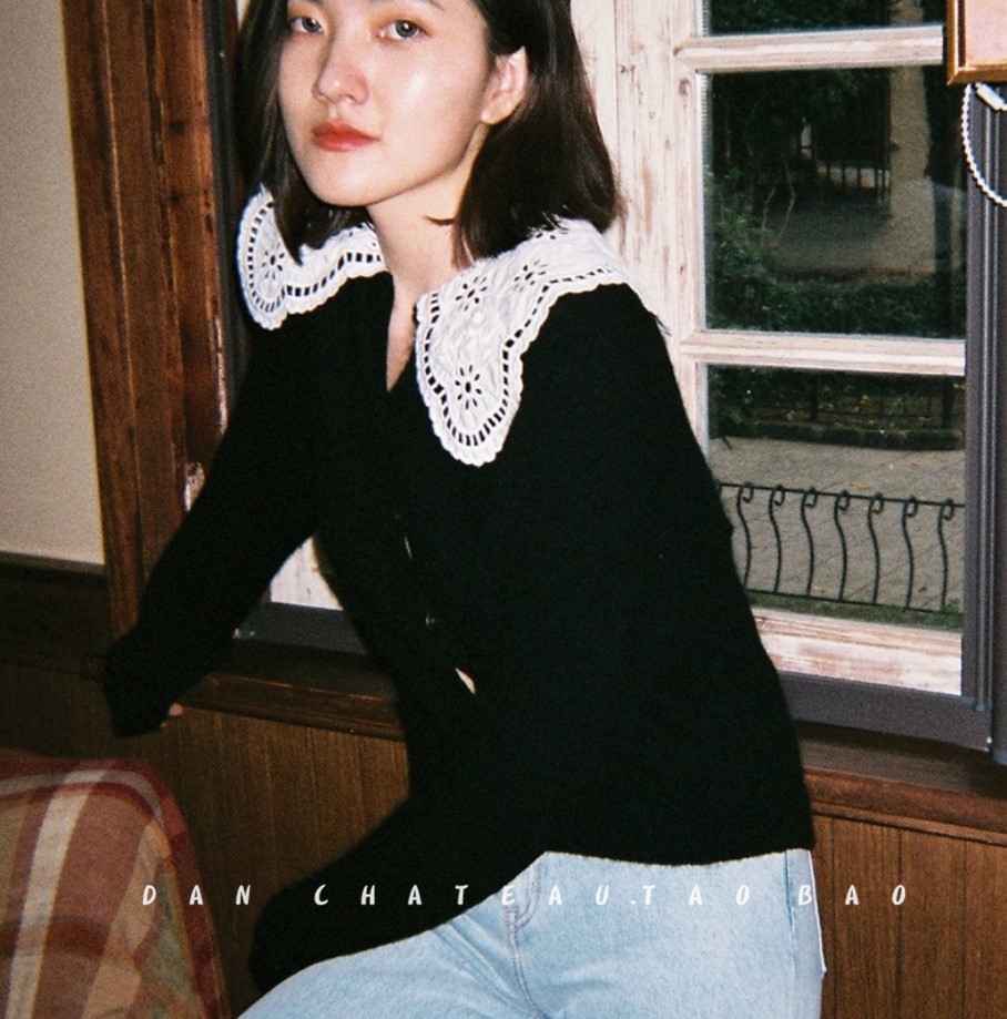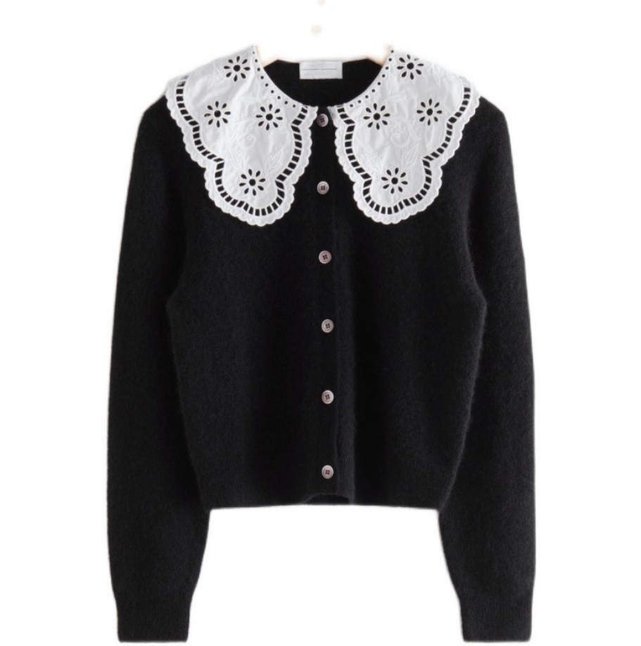 Свитер, кардиган, ретро кружевная трикотажная кукла, популярно в интернете, 2023, с вышивкой, кукольный воротник