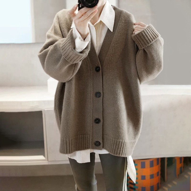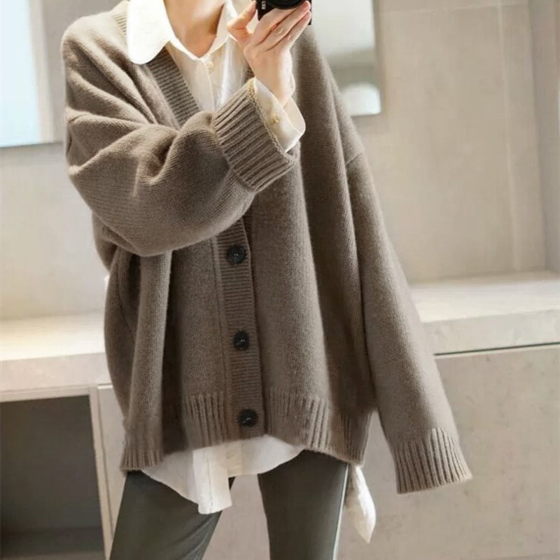 Кашемировый кардиган, трикотажная демисезонная куртка, оверсайз, увеличенная толщина, V-образный вырез, коллекция 2021