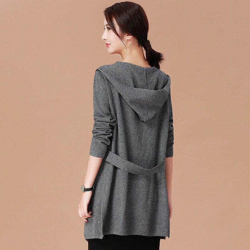 Осенний кардиган, свитер, длинная куртка, трикотажная шапка, 2020, средней длины, оверсайз
