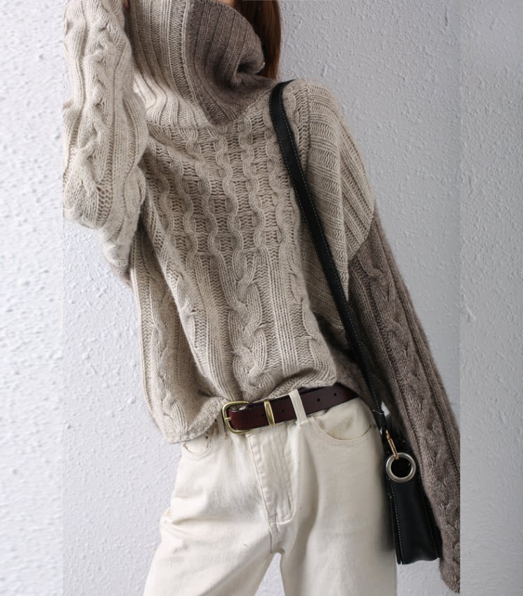 Демисезонный кашемировый ретро трикотажный базовый цветной свитер, свободный крой, увеличенная толщина