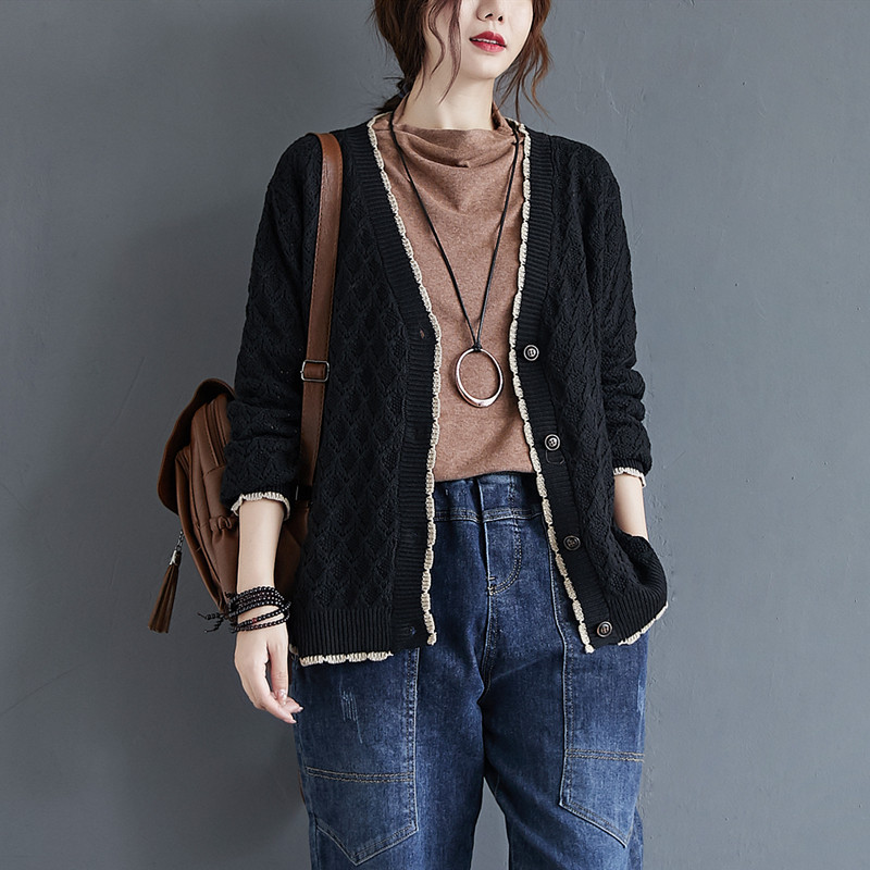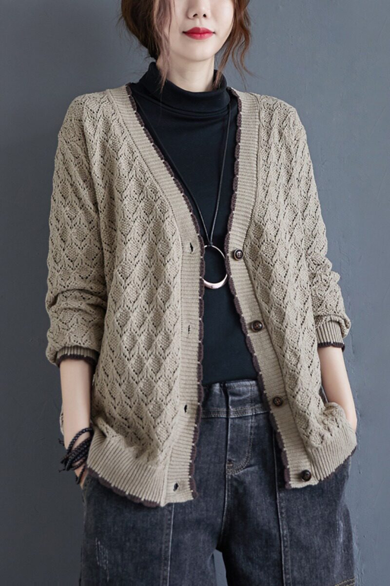 Осенний лонгслив, кардиган, куртка для отдыха, комплект, коллекция 2023, оверсайз, V-образный вырез