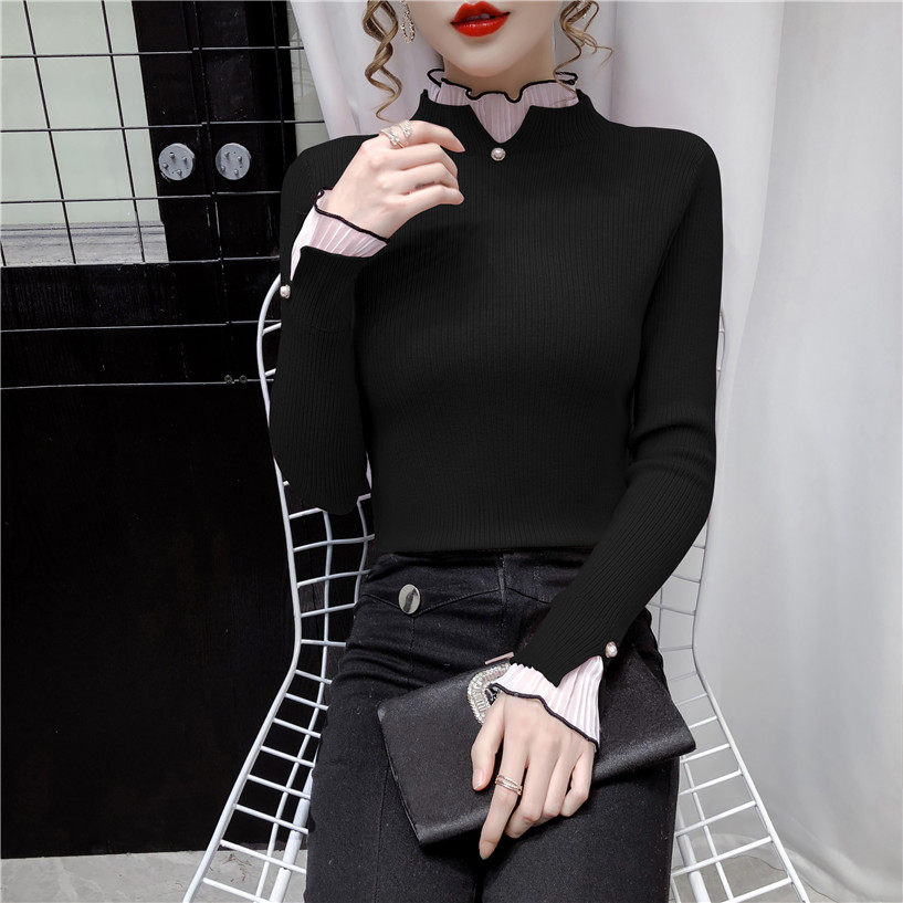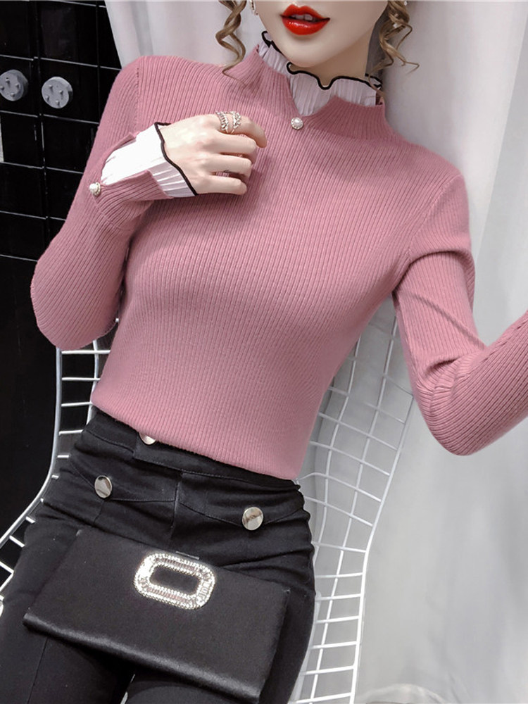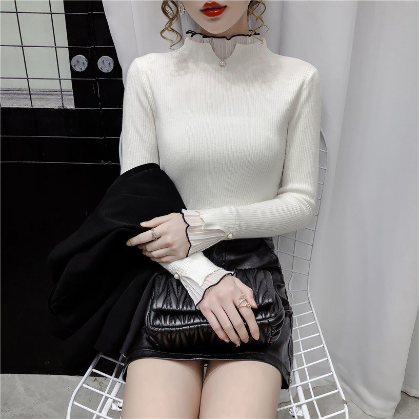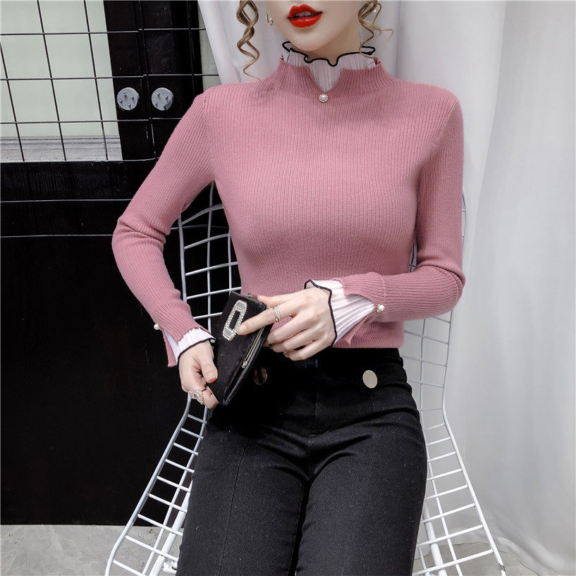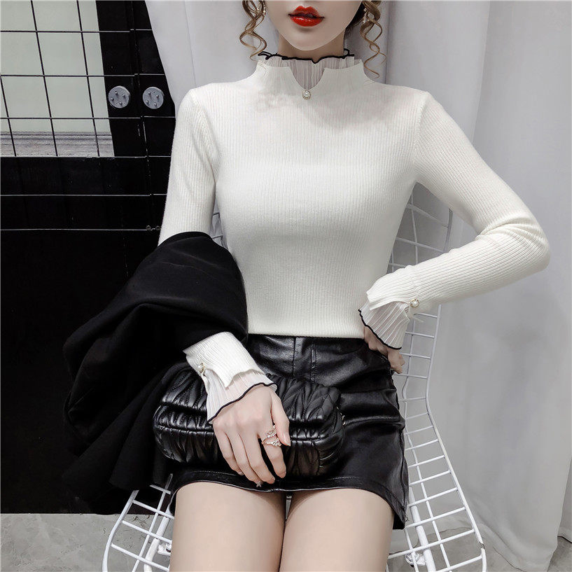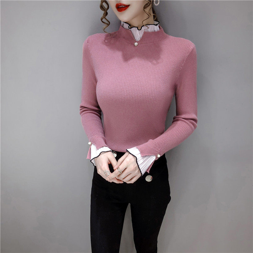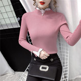 Трикотажный осенний демисезонный лонгслив, свитер, 2023, в западном стиле, облегающий крой, высокий воротник