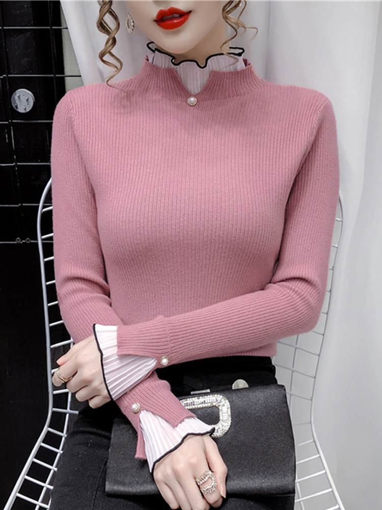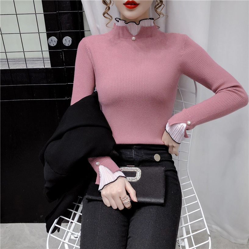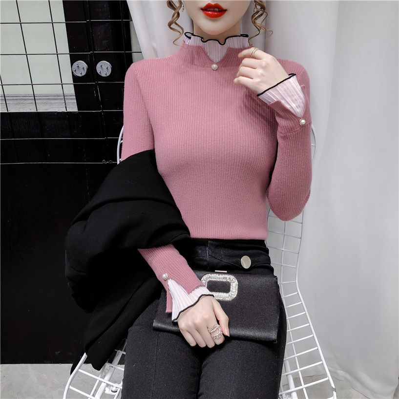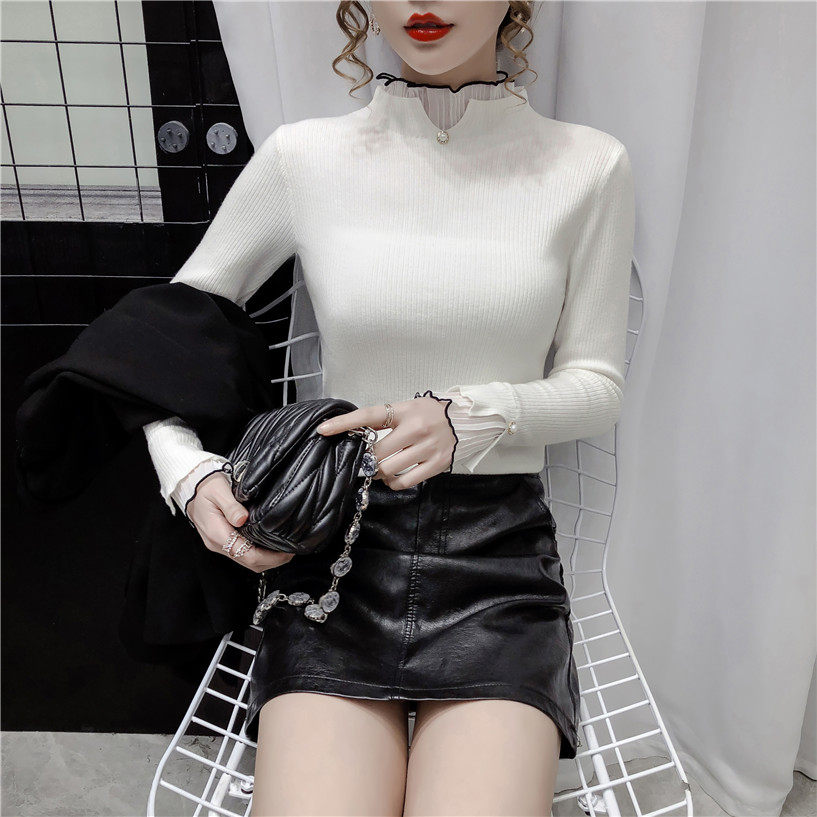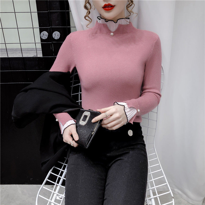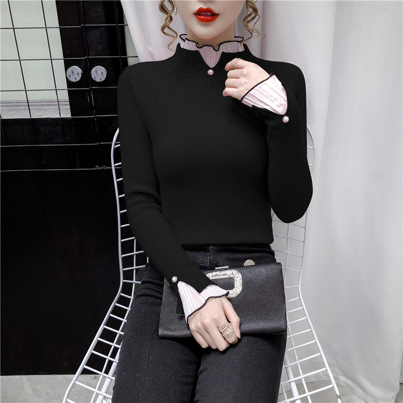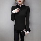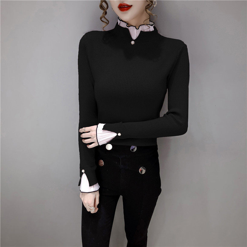 Трикотажный осенний демисезонный лонгслив, свитер, 2023, в западном стиле, облегающий крой, высокий воротник