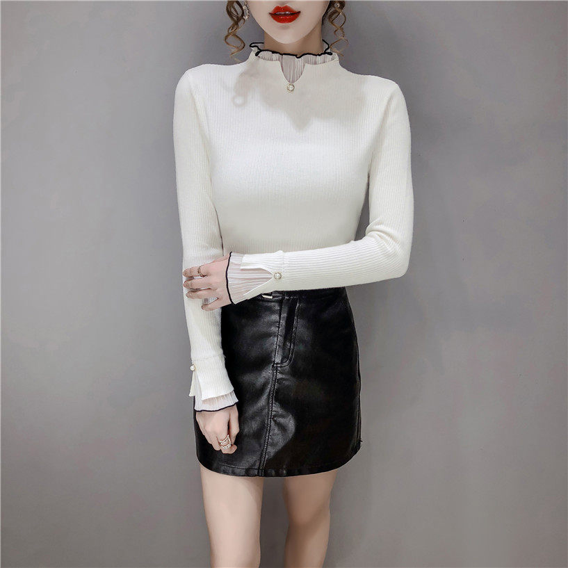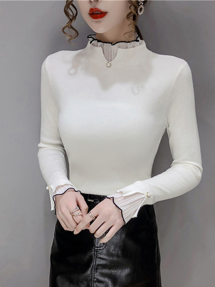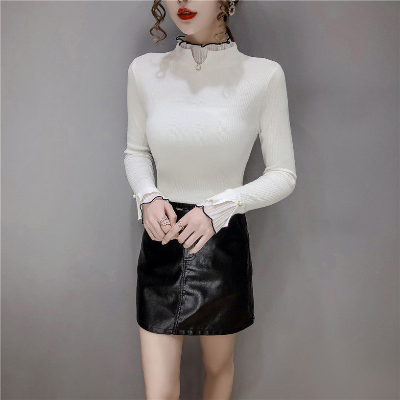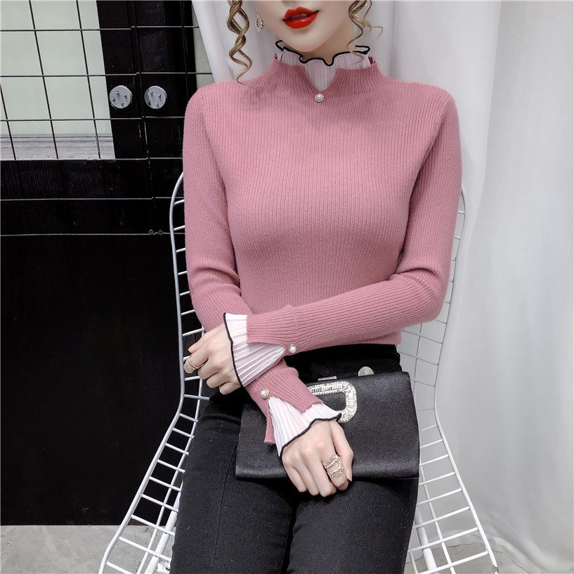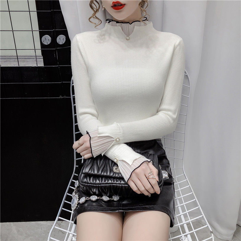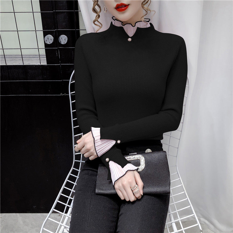 Трикотажный осенний демисезонный лонгслив, свитер, 2023, в западном стиле, облегающий крой, высокий воротник