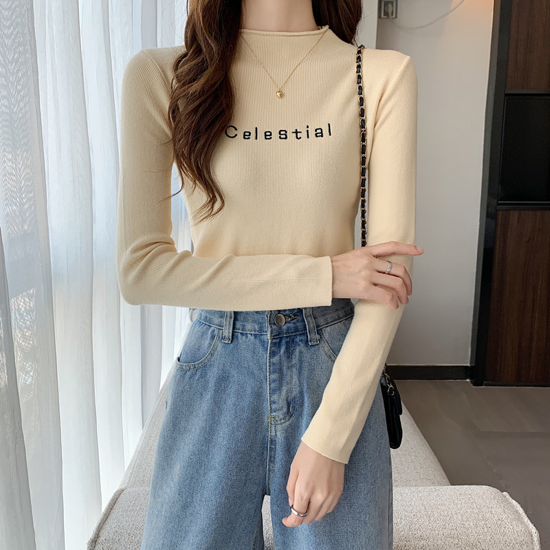 Демисезонный свитер, короткий базовый приятный телу лонгслив, высокий воротник, облегающий крой, в обтяжку, в западном стиле