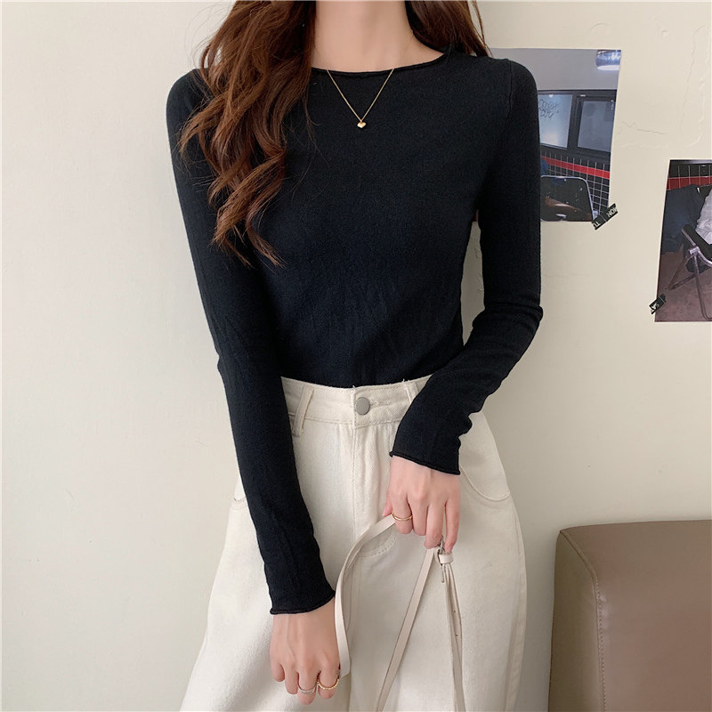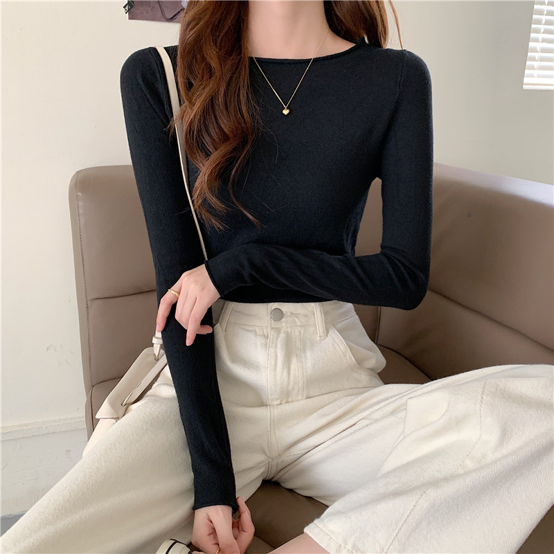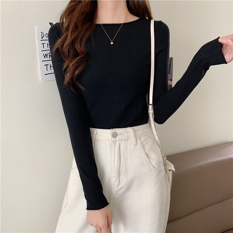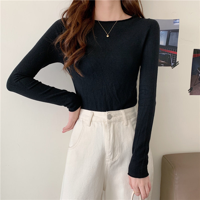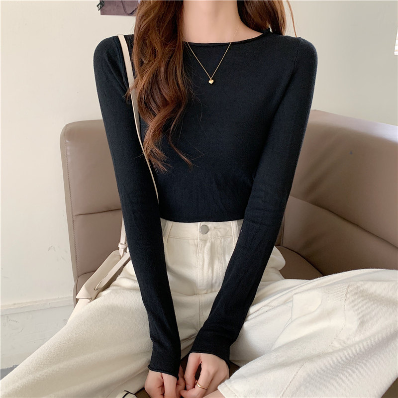 Демисезонный короткий трикотажный лонгслив, черный свитер, облегающий крой, в западном стиле