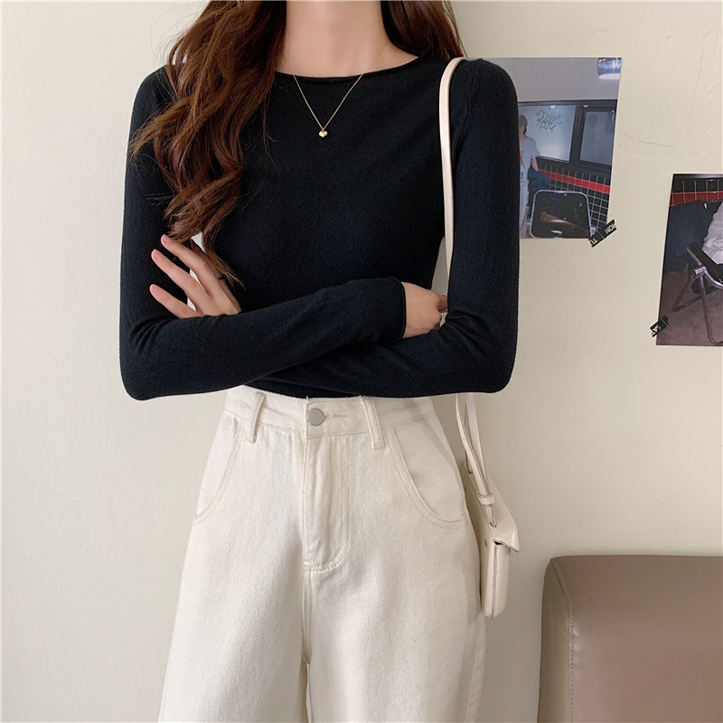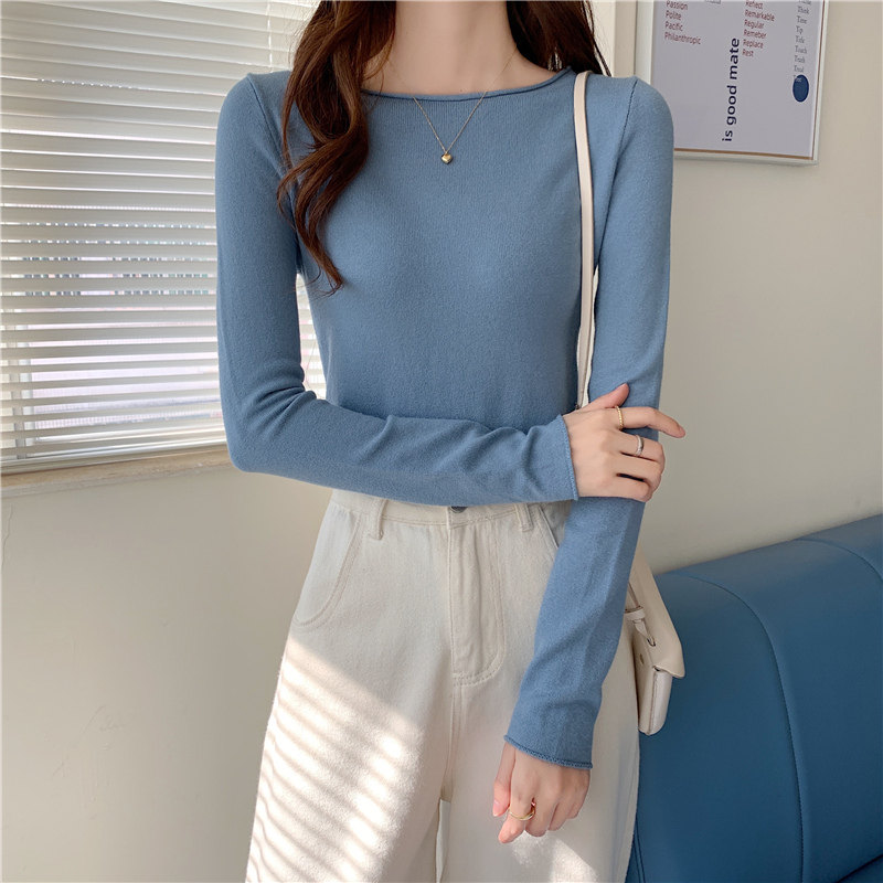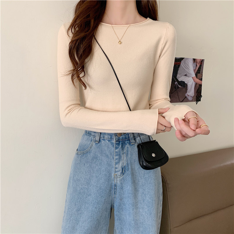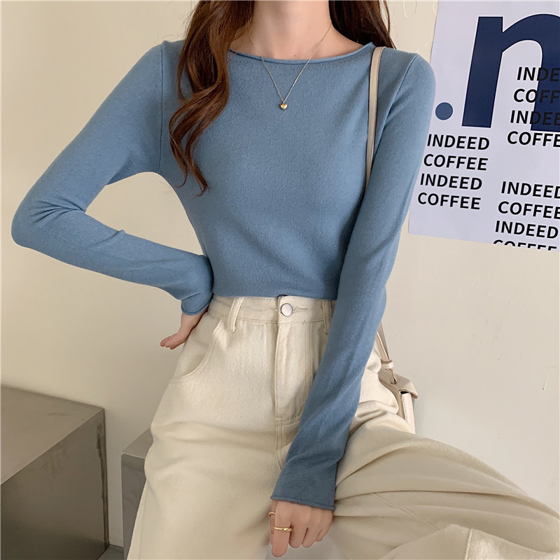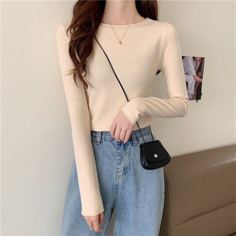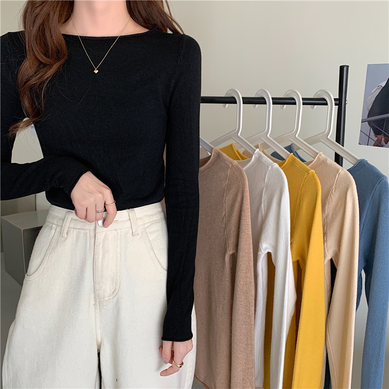 Демисезонный короткий трикотажный лонгслив, черный свитер, облегающий крой, в западном стиле