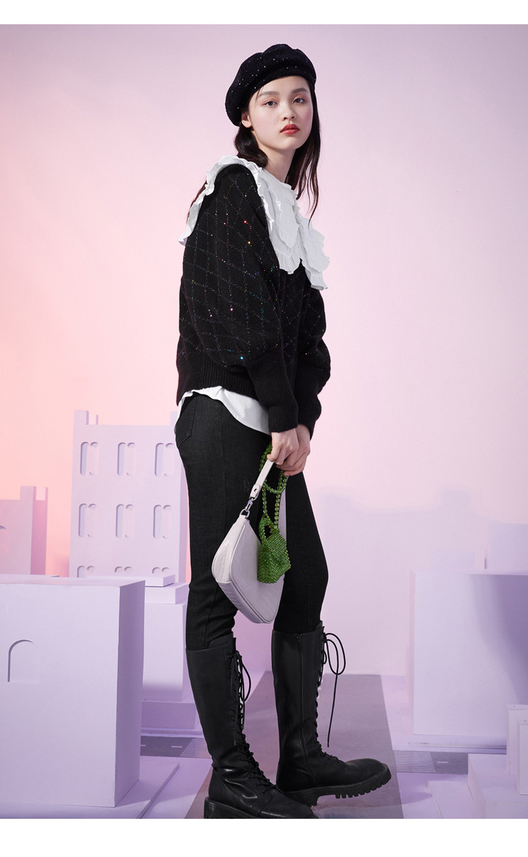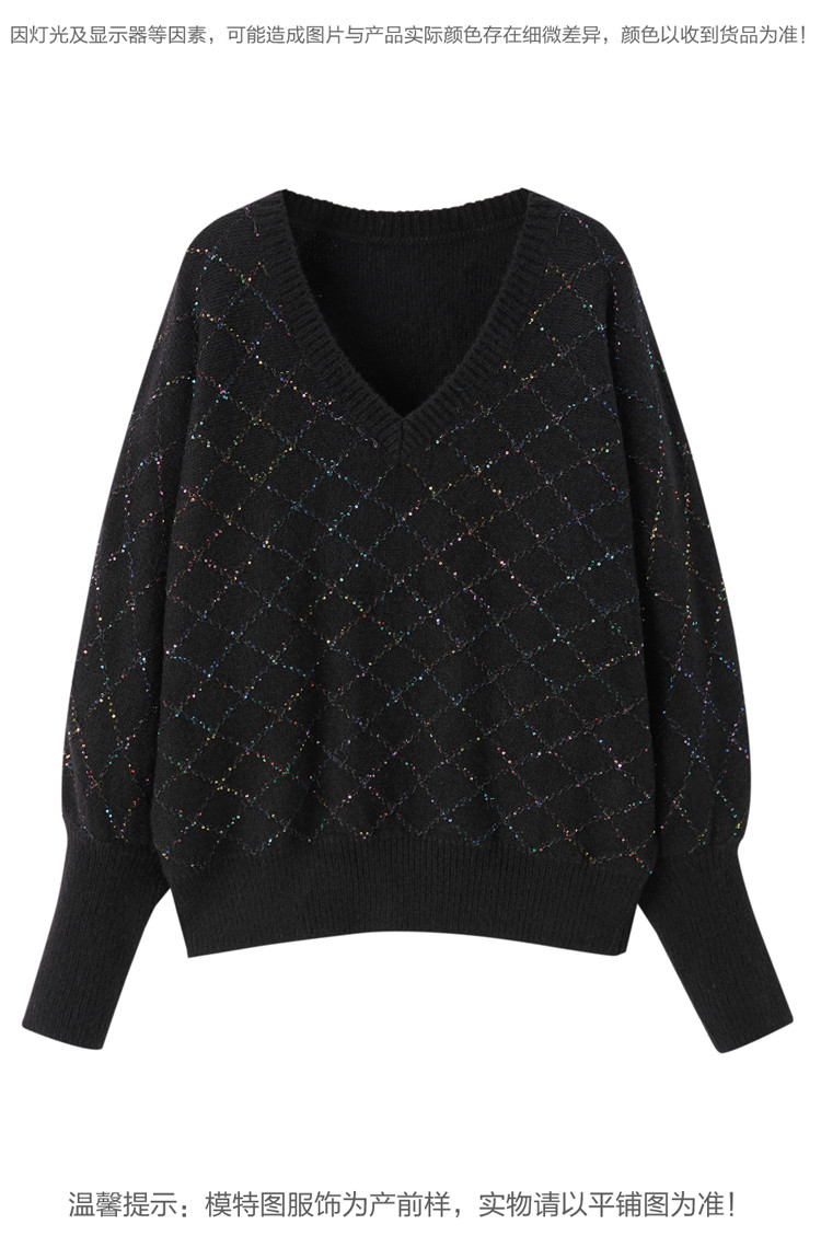 Шерстяной черный зимний свитер, V-образный вырез, 2020, свободный крой