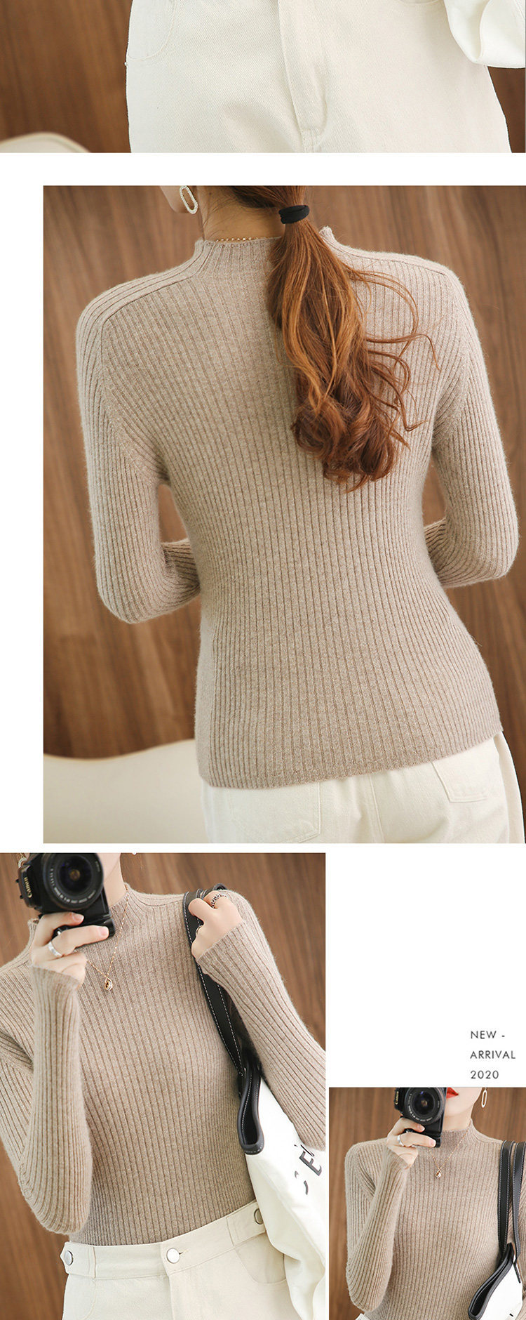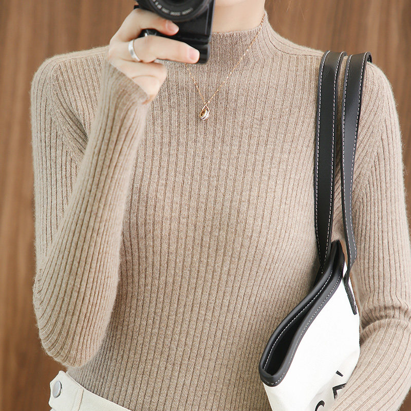 Демисезонный кашемировый шерстяной трикотажный свитер, облегающий крой, большой размер