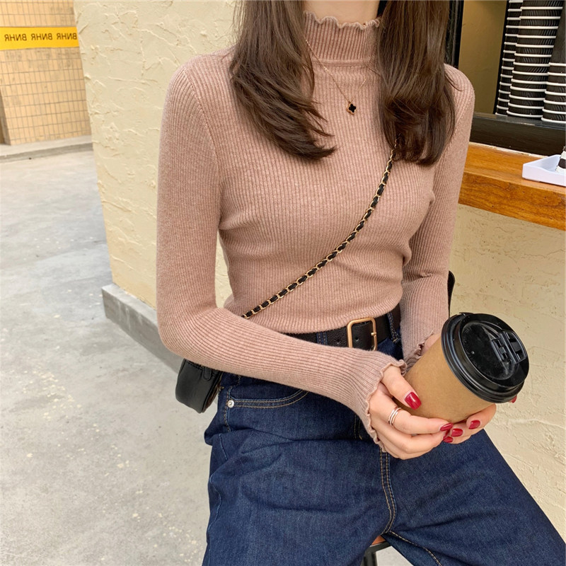 Базовый приятный телу демисезонный лонгслив, свитер, высокий воротник, облегающий крой, коллекция 2023, в обтяжку, по фигуре