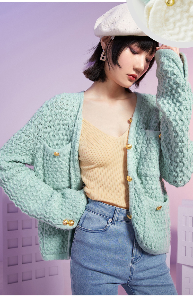 Зимний кардиган, ретро трикотажный свитер, V-образный вырез, 2020, французский ретро стиль