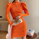 Минималистичное трикотажное платье, демисезонный лонгслив, базовое приятное телу шерстяное платье, коллекция 2023