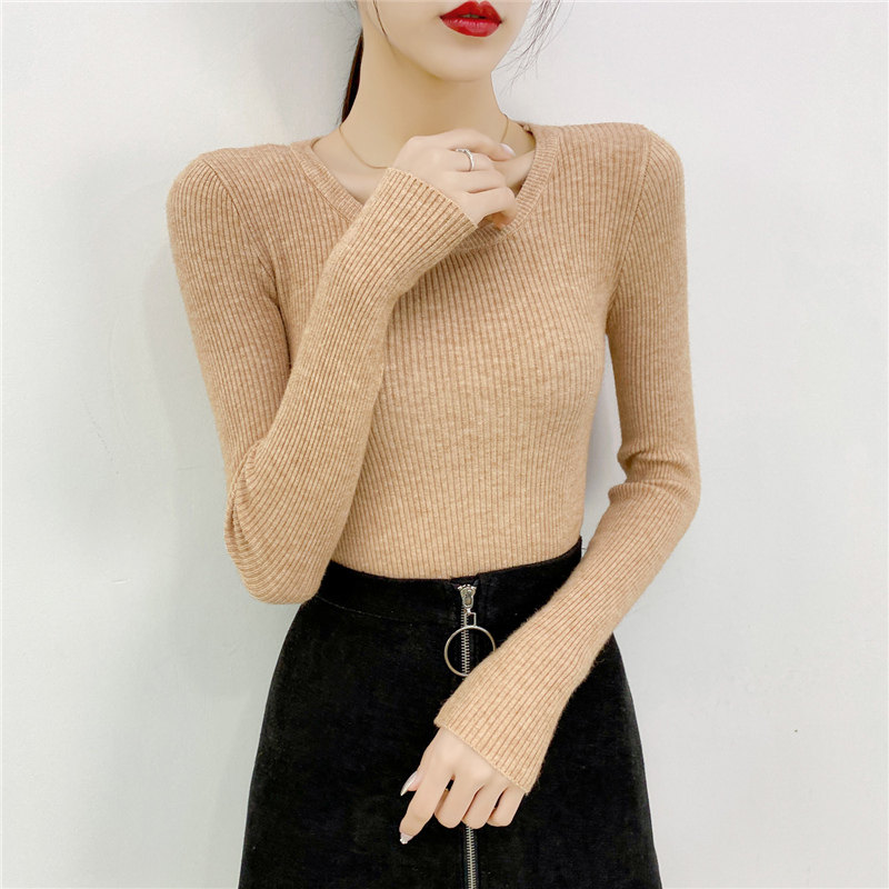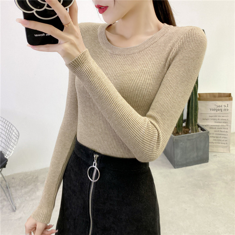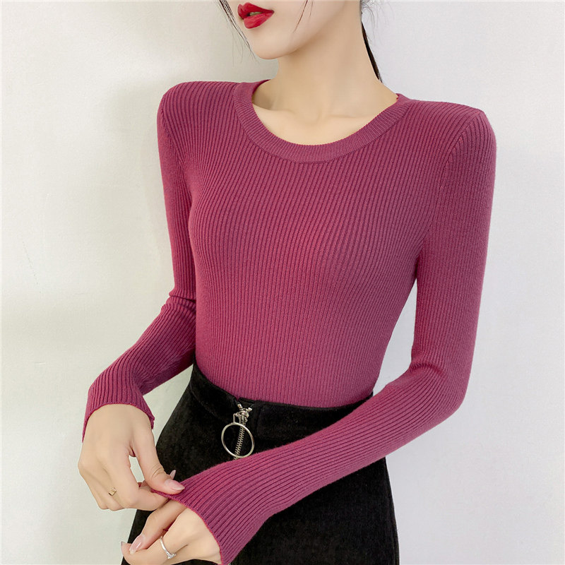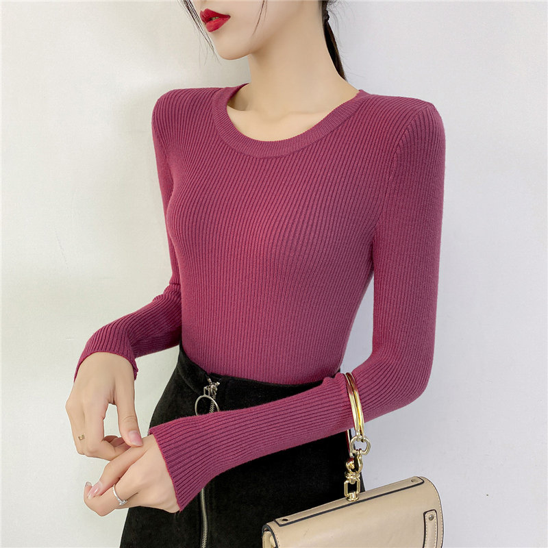 Демисезонный приталенный трикотажный лонгслив, свитер, в западном стиле