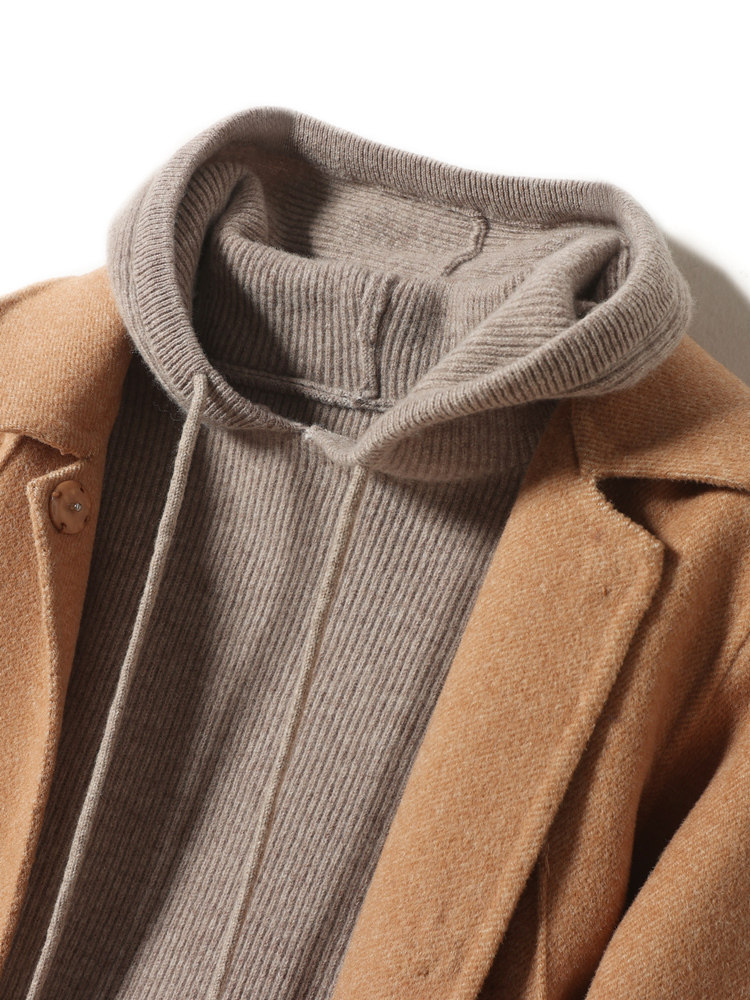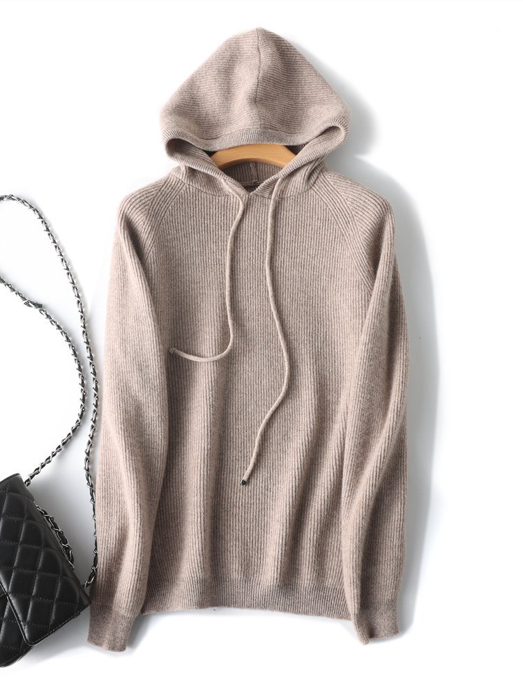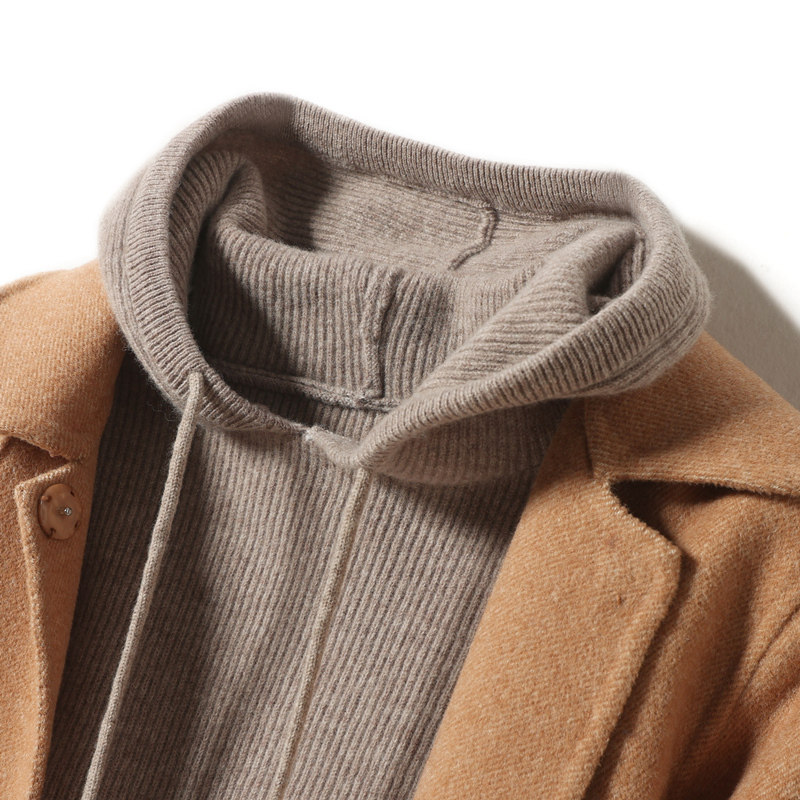 Шерстяной свитер с капюшоном, шерстяная трикотажная кашемировая шапка, балахон, зимняя толстовка