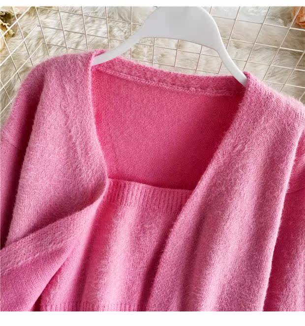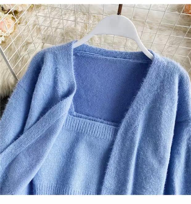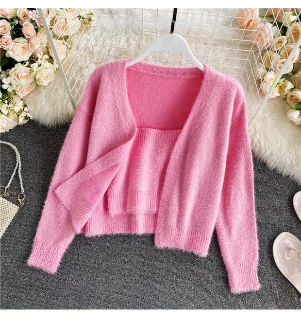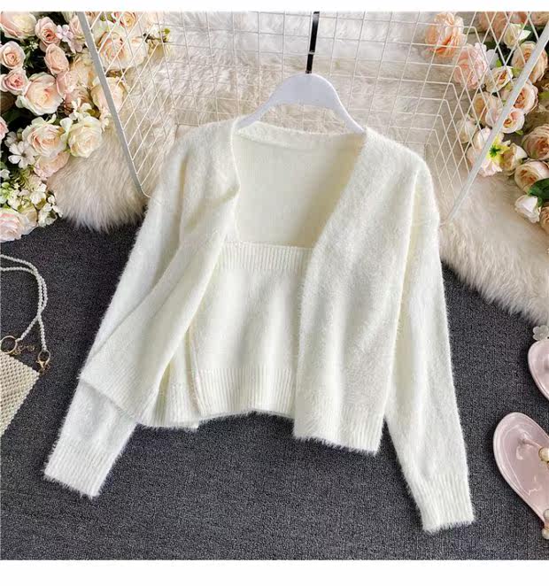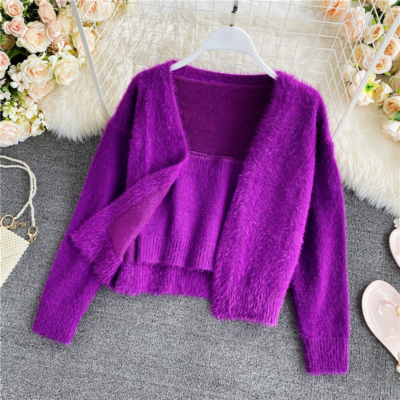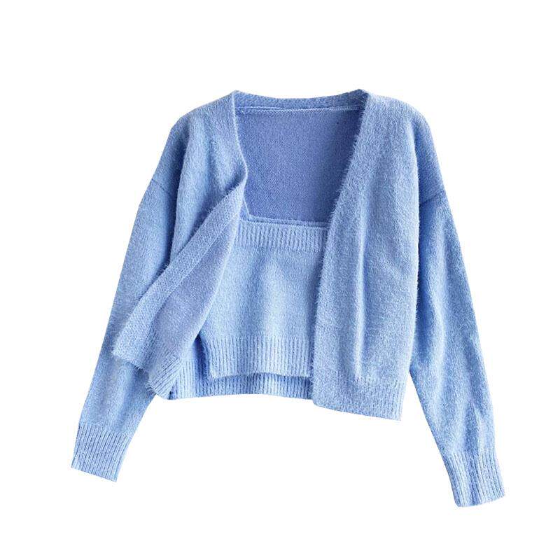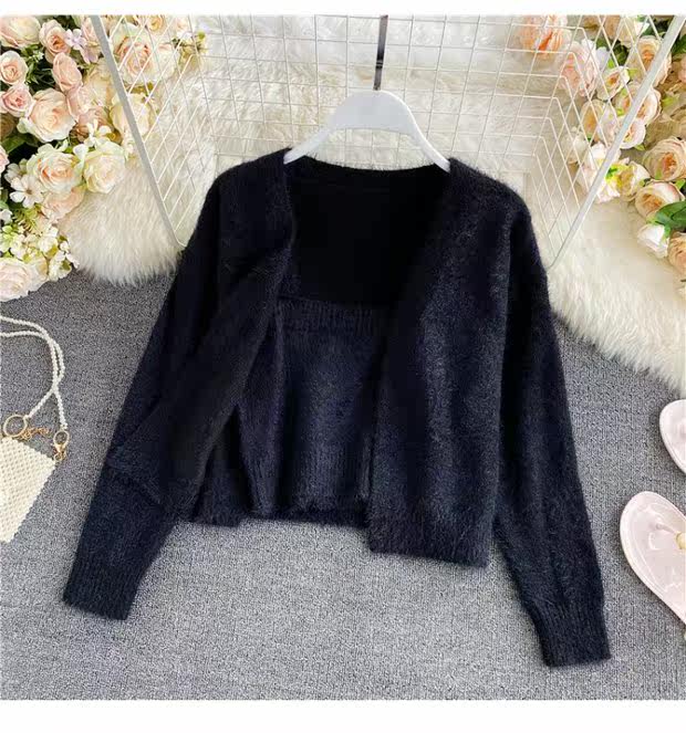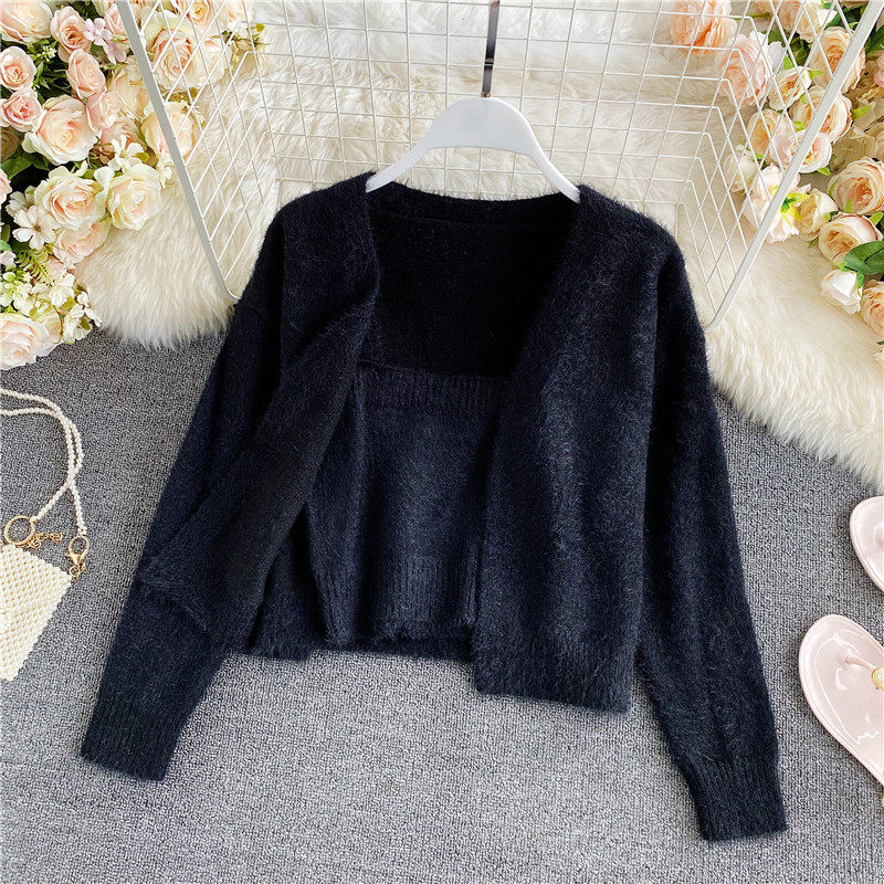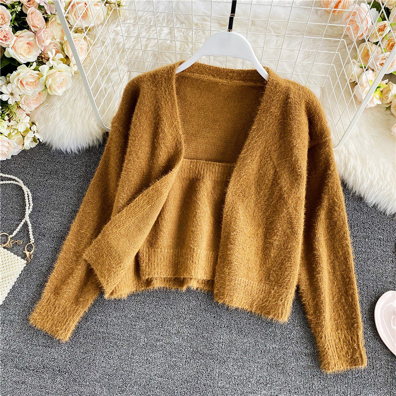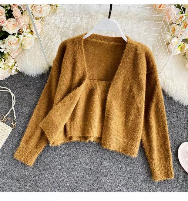 Демисезонный короткий бюстгальтер-топ, топ с чашечками, комплект, свитер, кардиган, в западном стиле