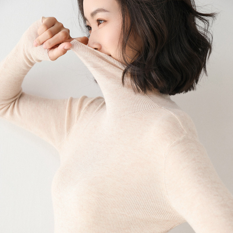 Трикотажный базовый приятный телу тонкий свитер, облегающий крой, популярно в интернете, в обтяжку, высокий воротник
