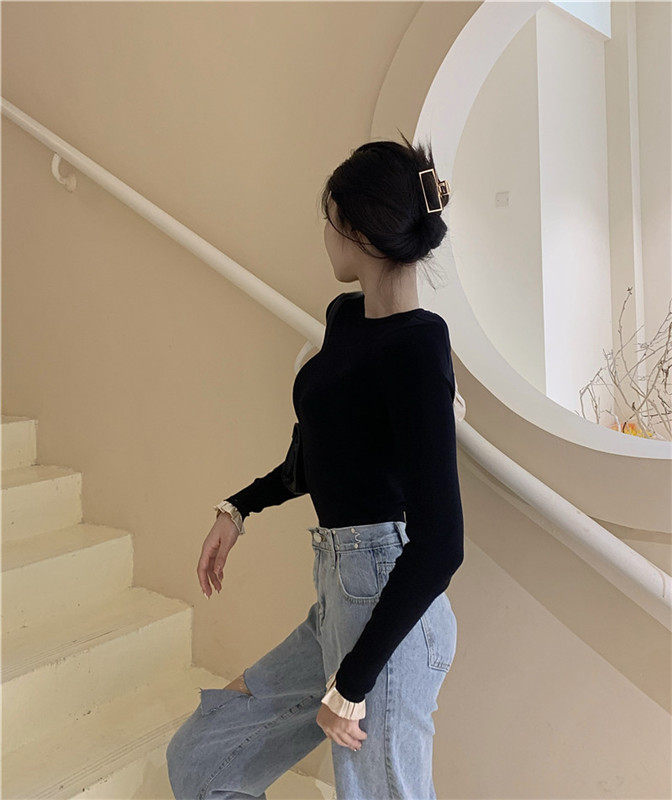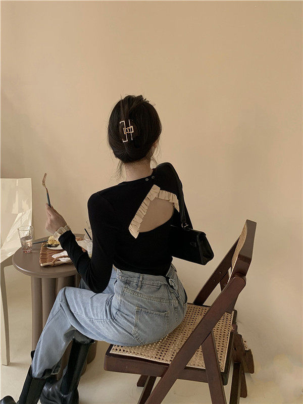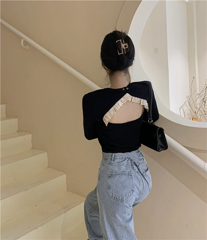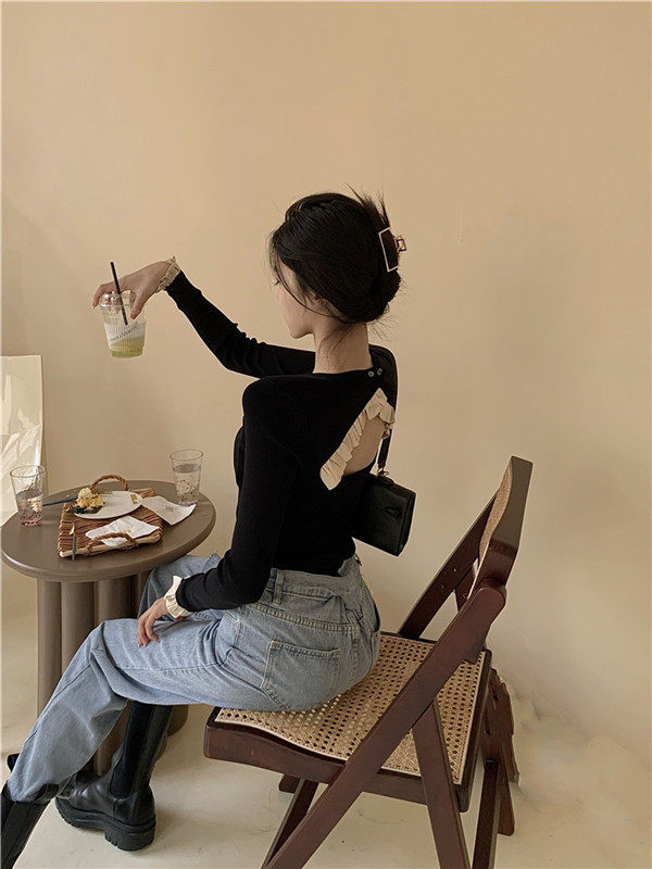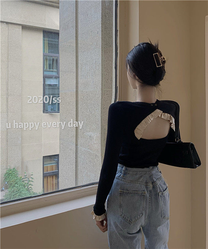 Осенний дизайнерский свитер, сексуальный трикотажный лонгслив, футболка, тренд сезона, с открытой спиной, в западном стиле