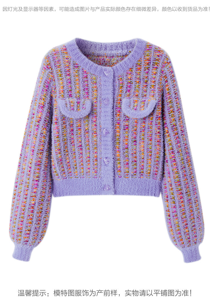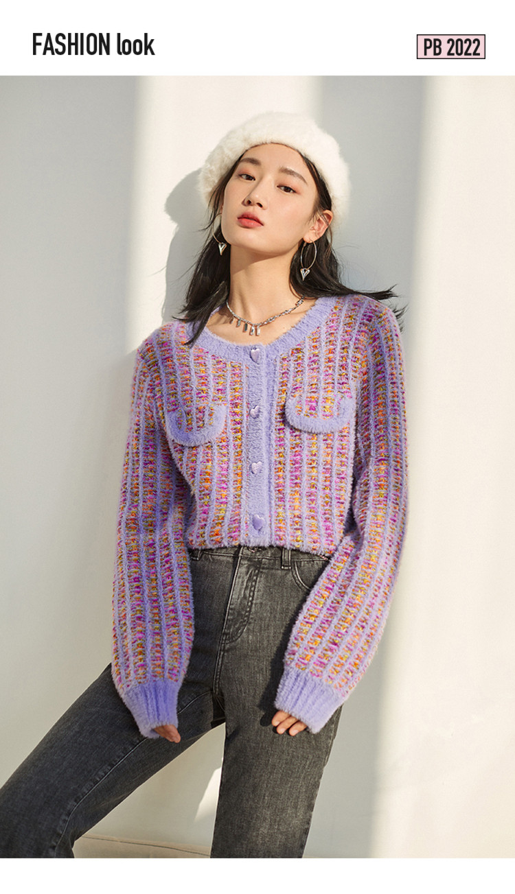 Сиреневый весенний кардиган, трикотажный свитер, куртка, в стиле Шанель, коллекция 2022, городской стиль, французский стиль