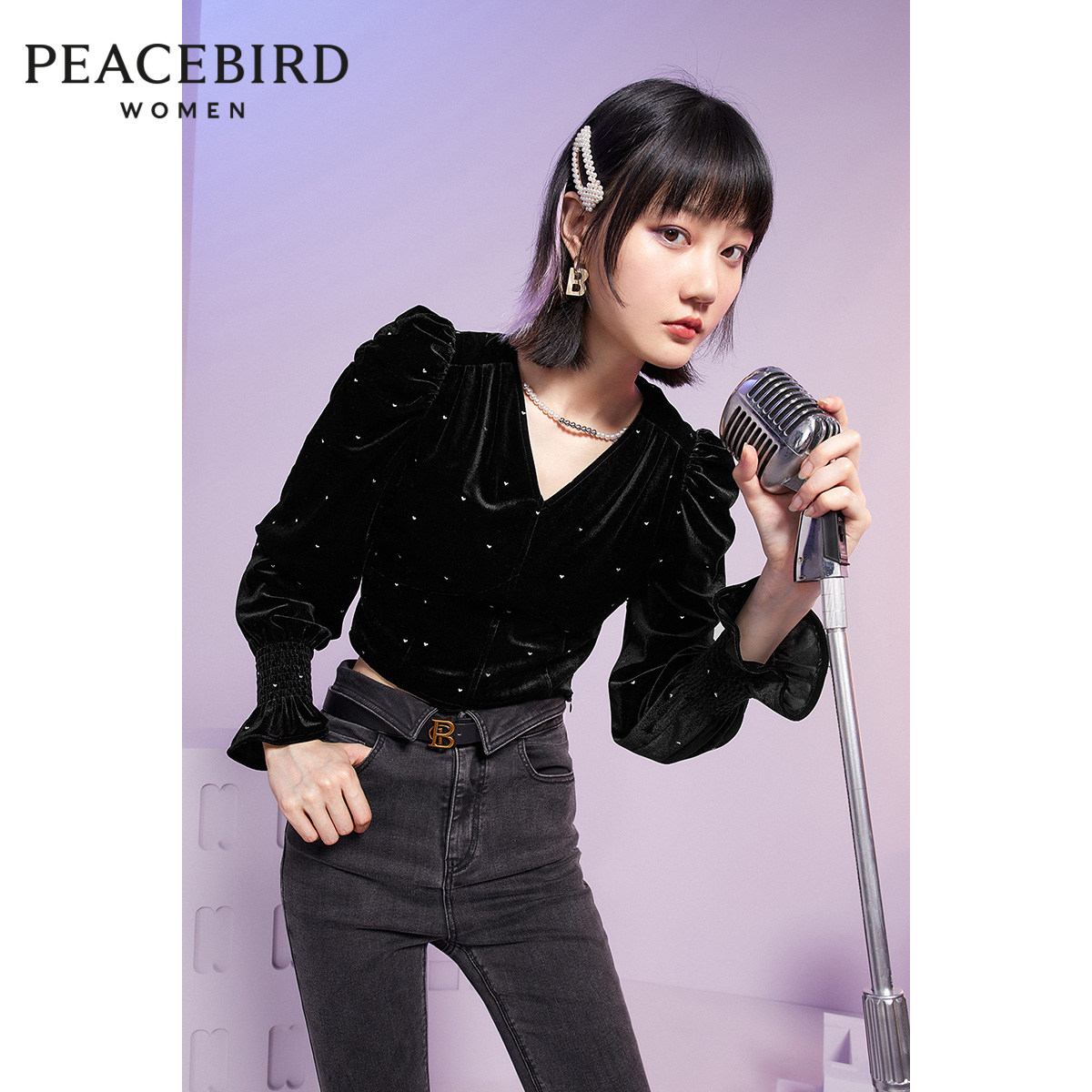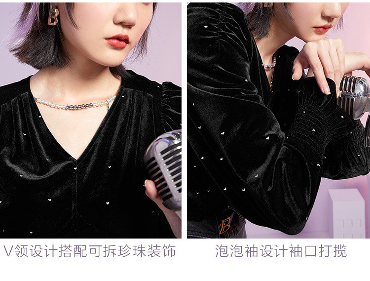 Черный бархатный зимний мегафон, футболка, V-образный вырез, 2020, с вышивкой