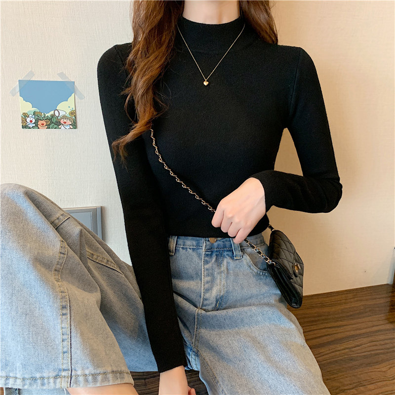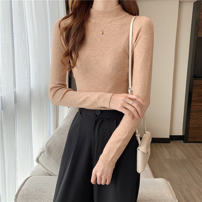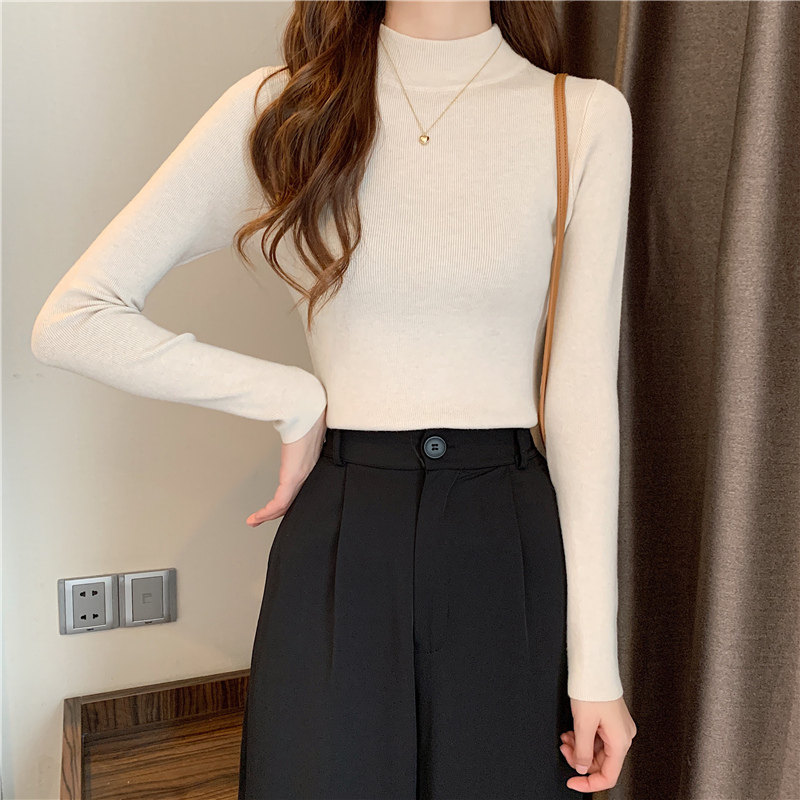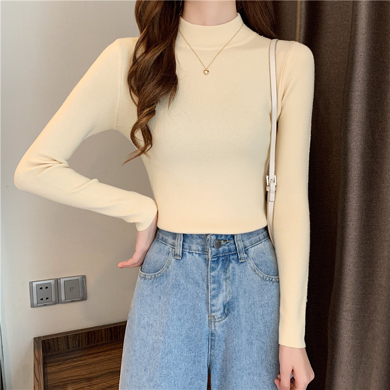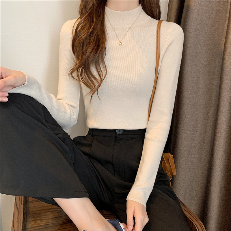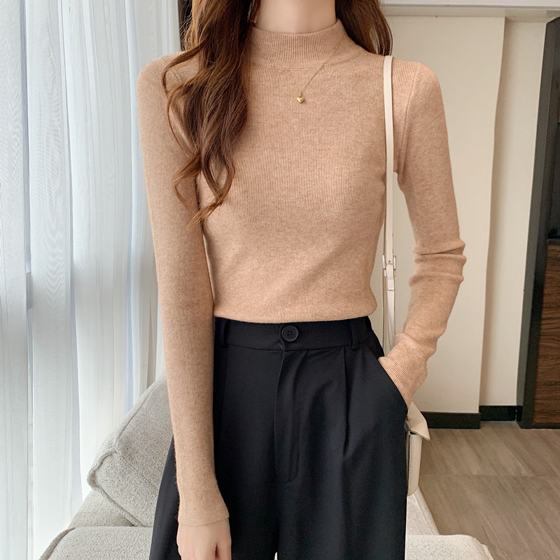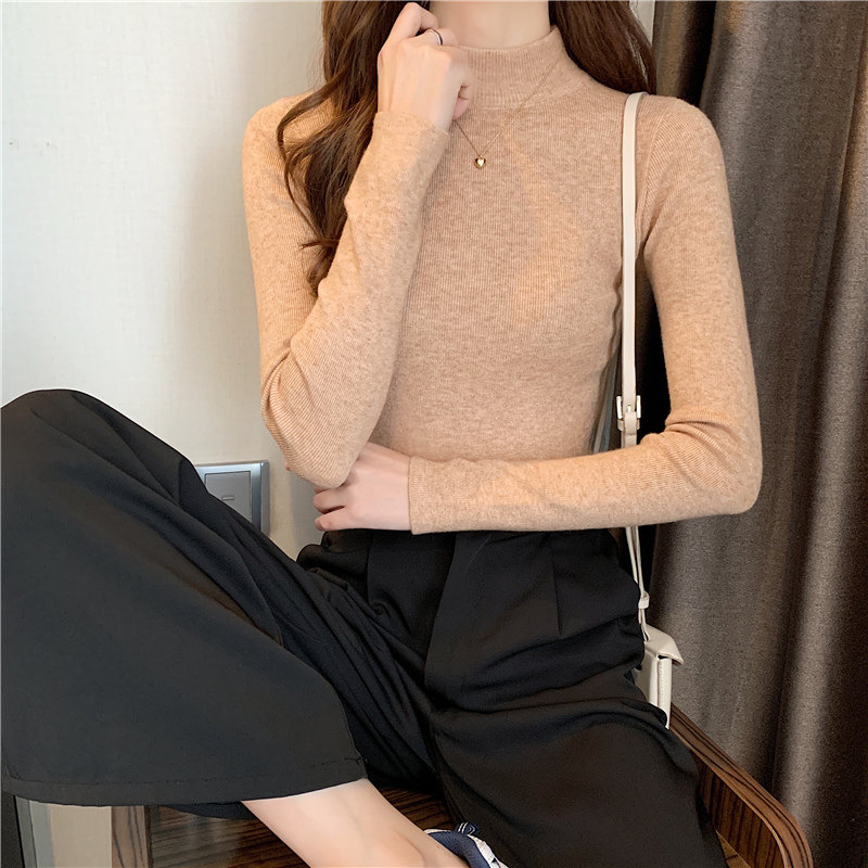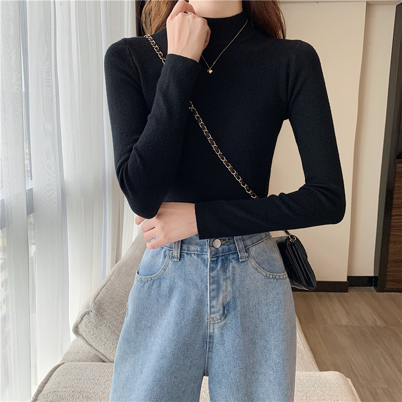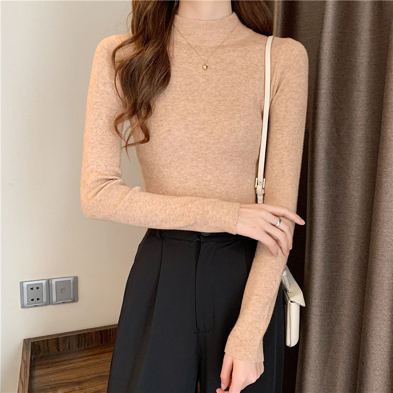 Трикотажная рубашка, утепленный лонгслив, высокий воротник, облегающий крой, в обтяжку