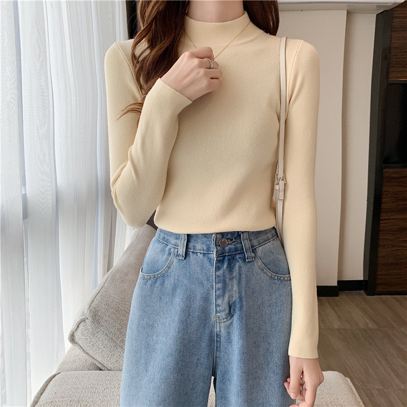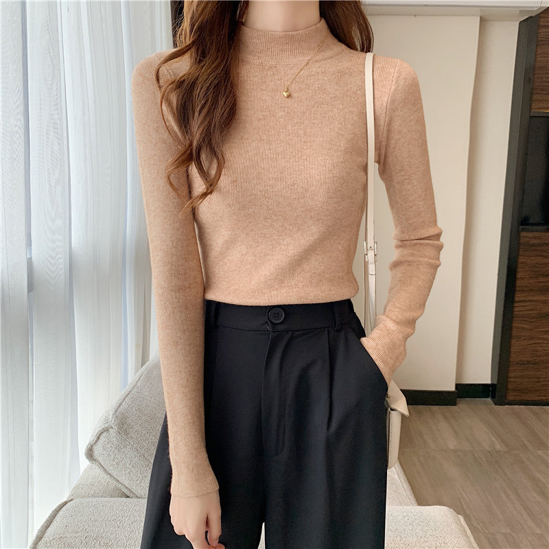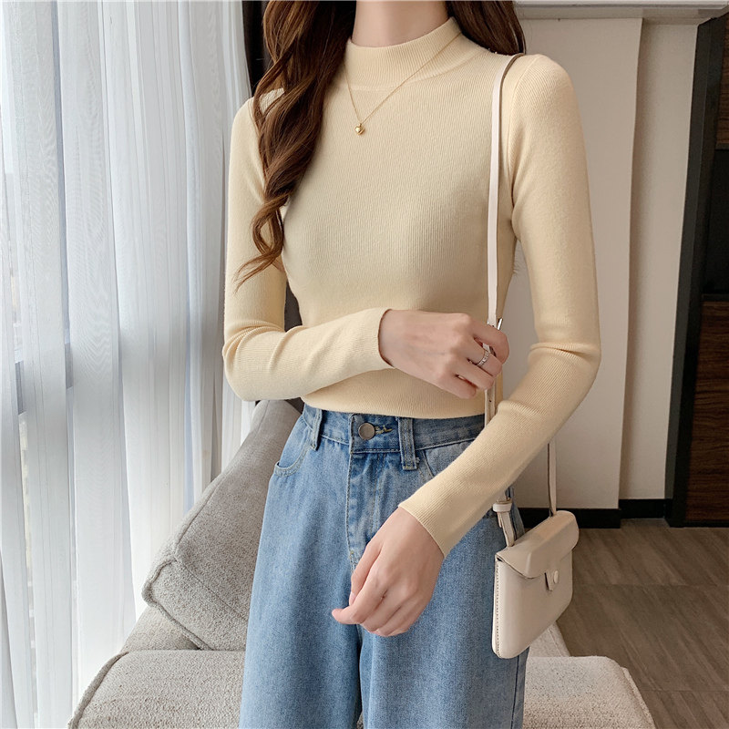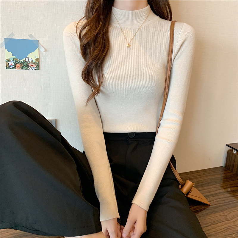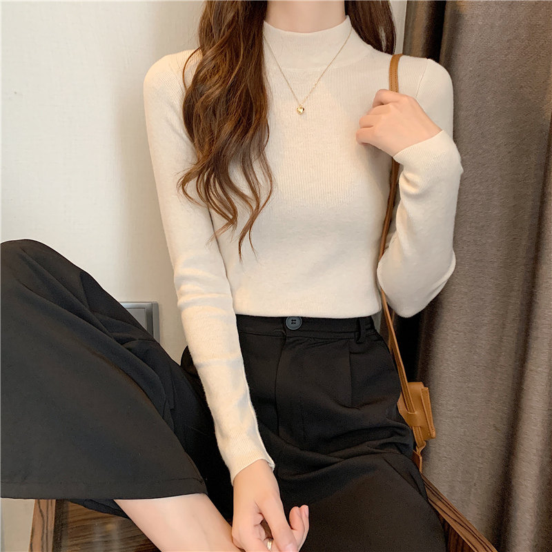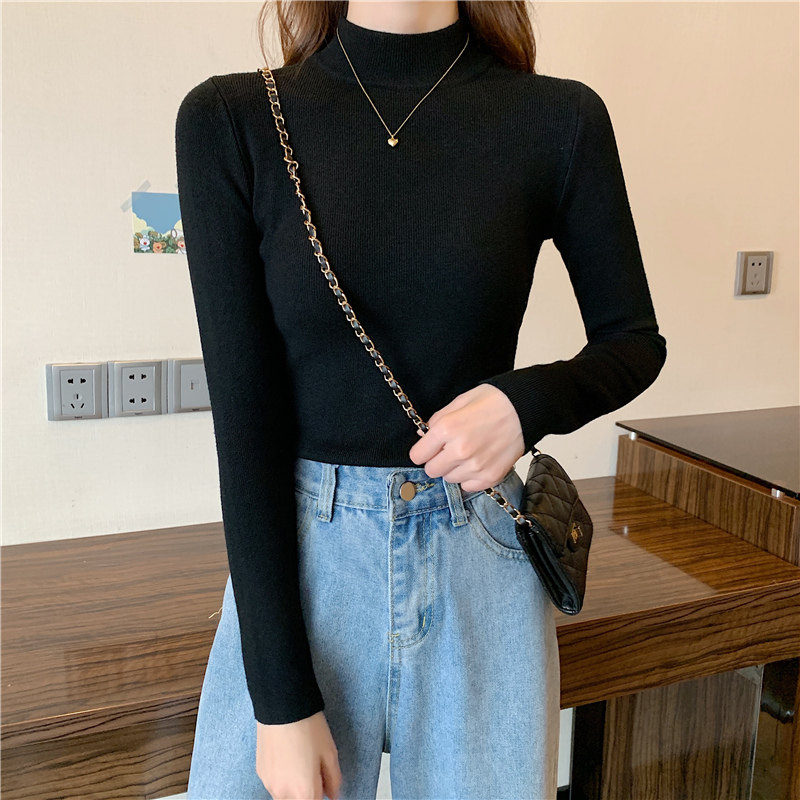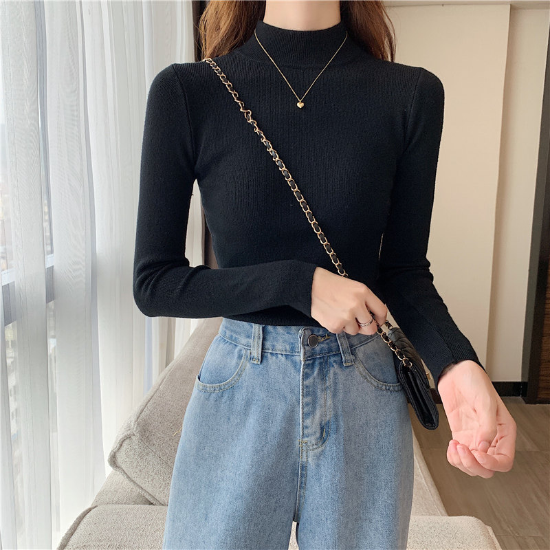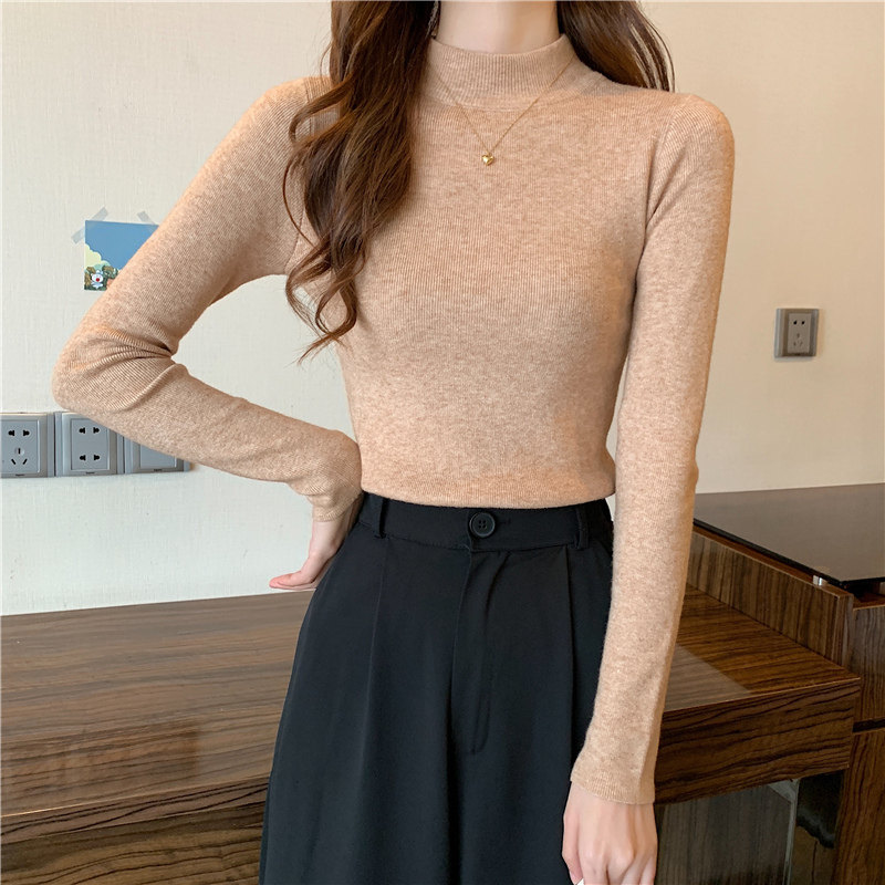 Трикотажная рубашка, утепленный лонгслив, высокий воротник, облегающий крой, в обтяжку