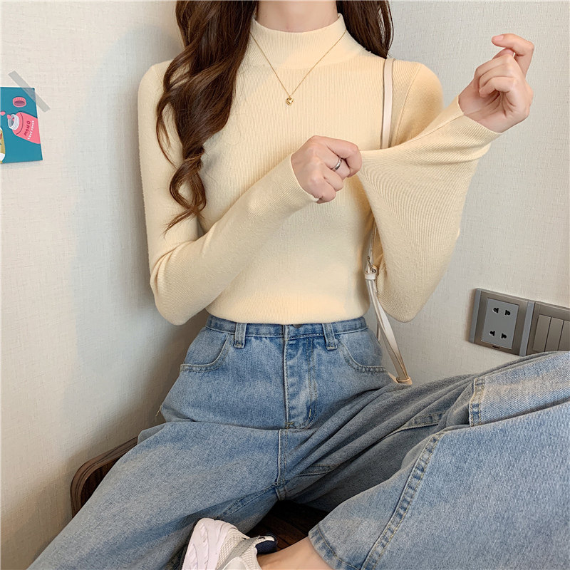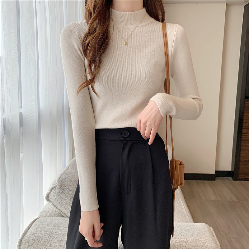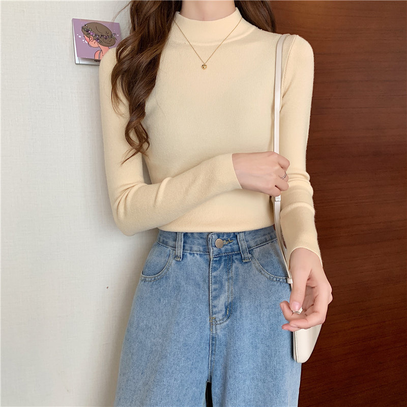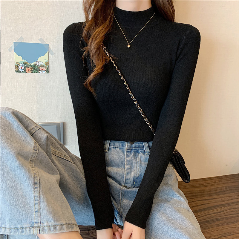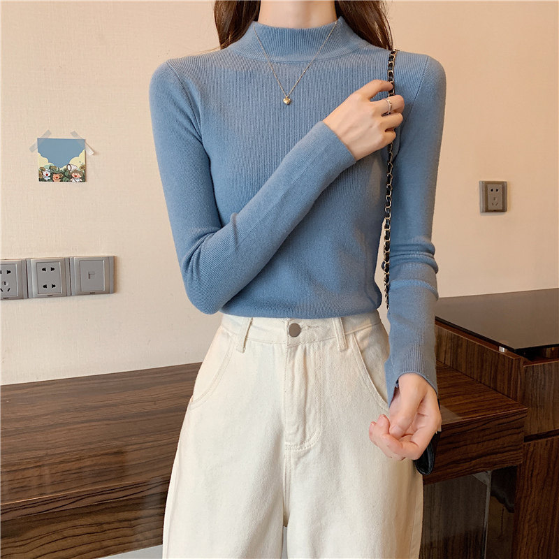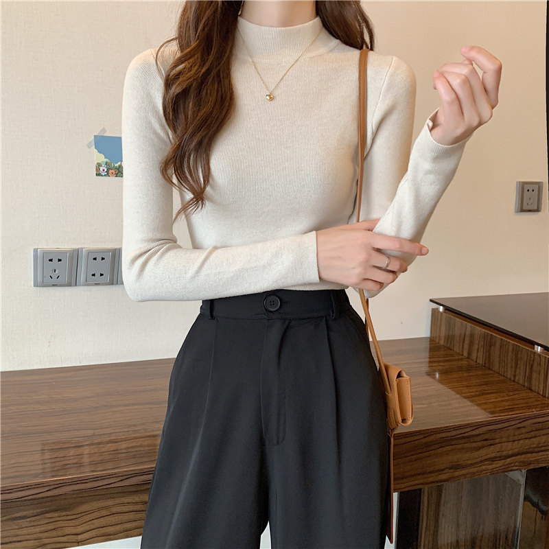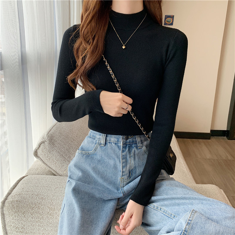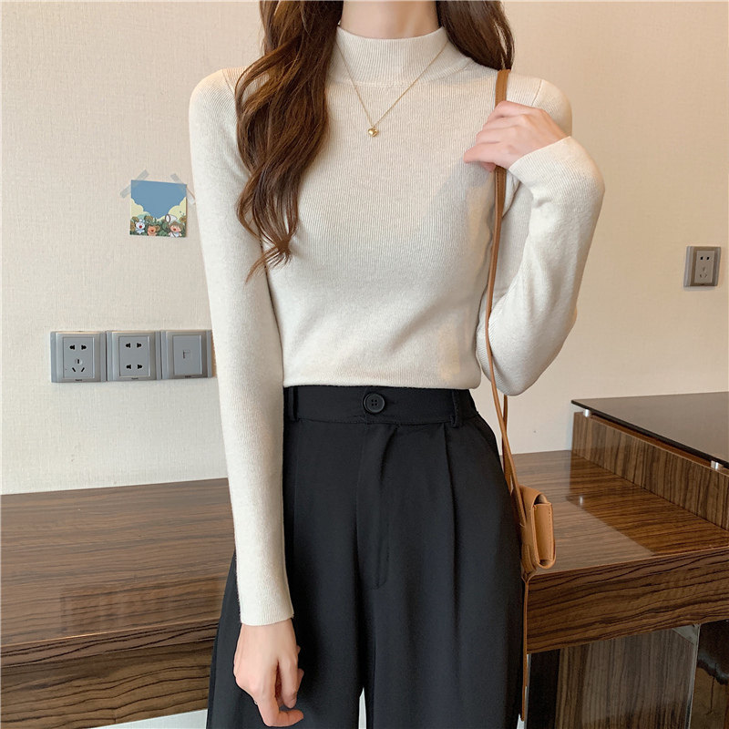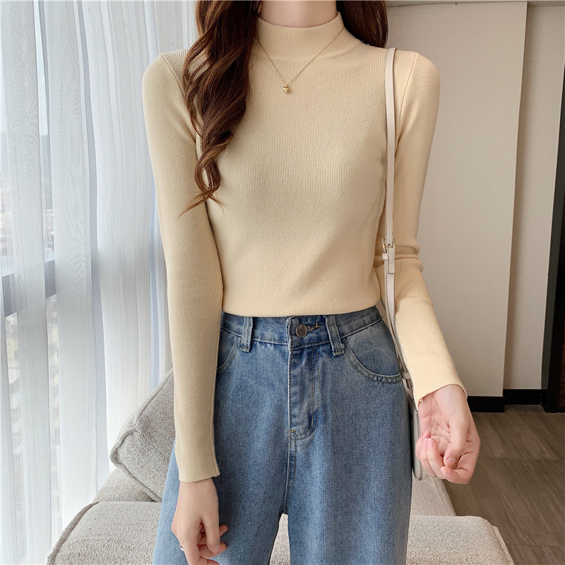 Трикотажная рубашка, утепленный лонгслив, высокий воротник, облегающий крой, в обтяжку