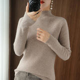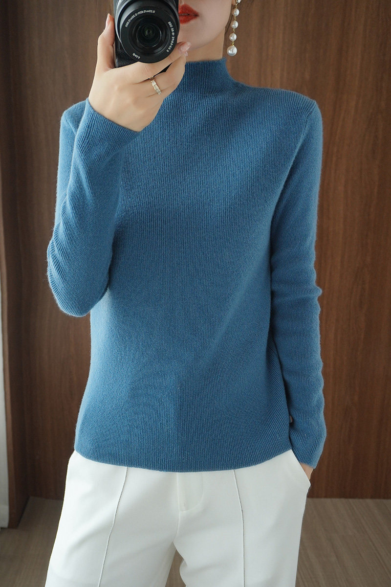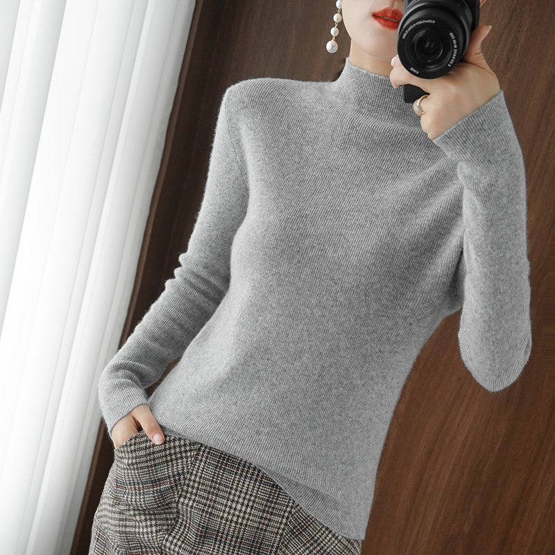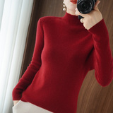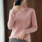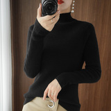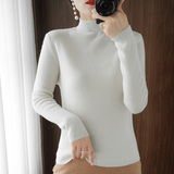 Демисезонный однотонный базовый приятный телу трикотажный свитер, в обтяжку, высокий воротник, облегающий крой