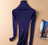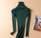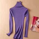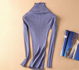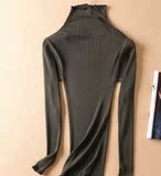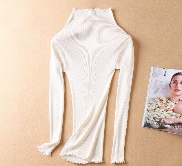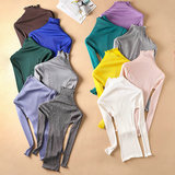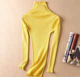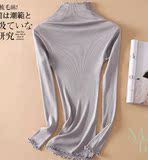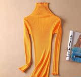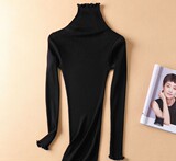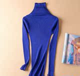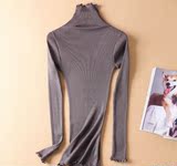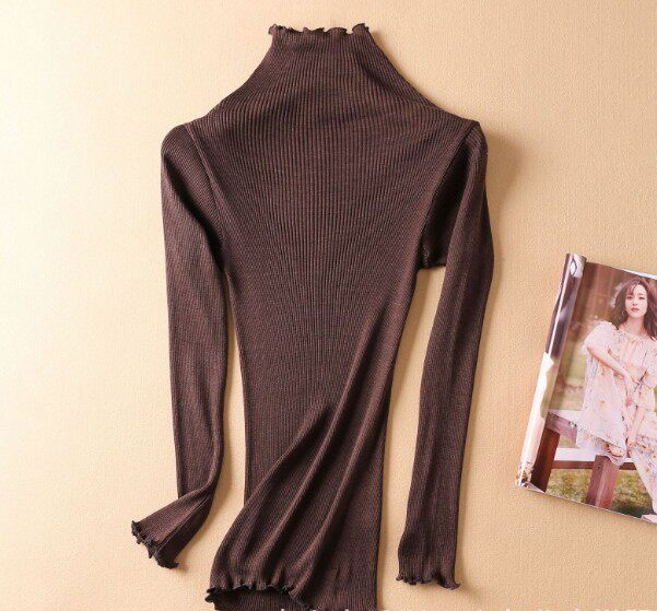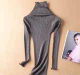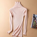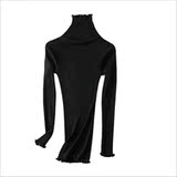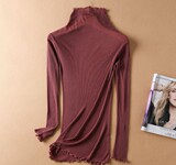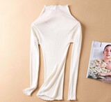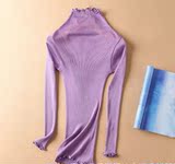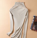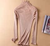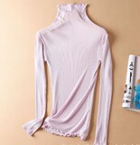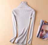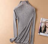 Демисезонный шелковый базовый приятный телу эластичный трикотажный свитер, лонгслив, футболка, высокий воротник, с рукавом