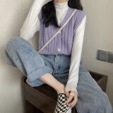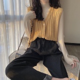 Трикотажный жилет, демисезонная майка топ, куртка, свитер, кардиган, в корейском стиле, коллекция 2021, V-образный вырез, оверсайз
