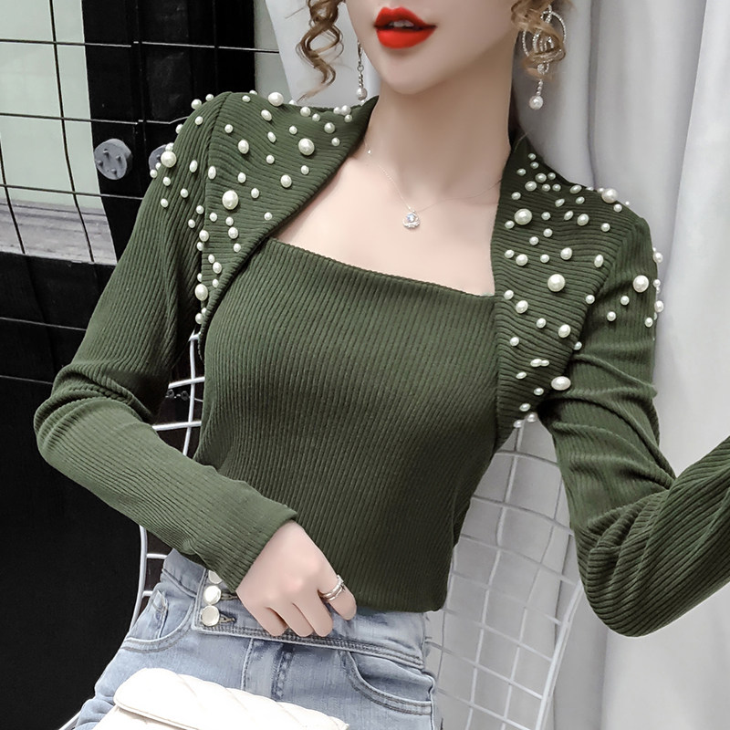 Трикотажная игла для бисера, базовый приятный телу свитер, 2020, в корейском стиле, квадратный вырез