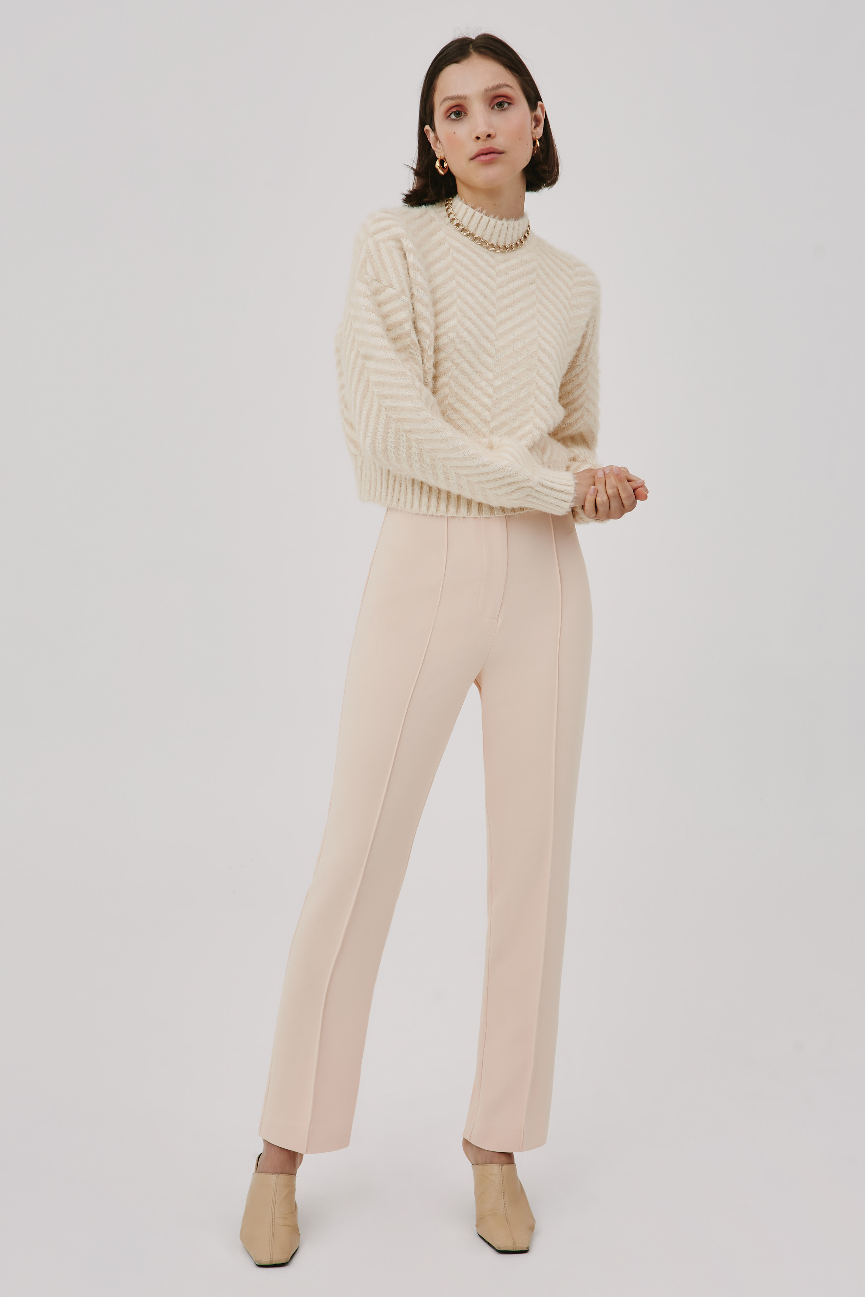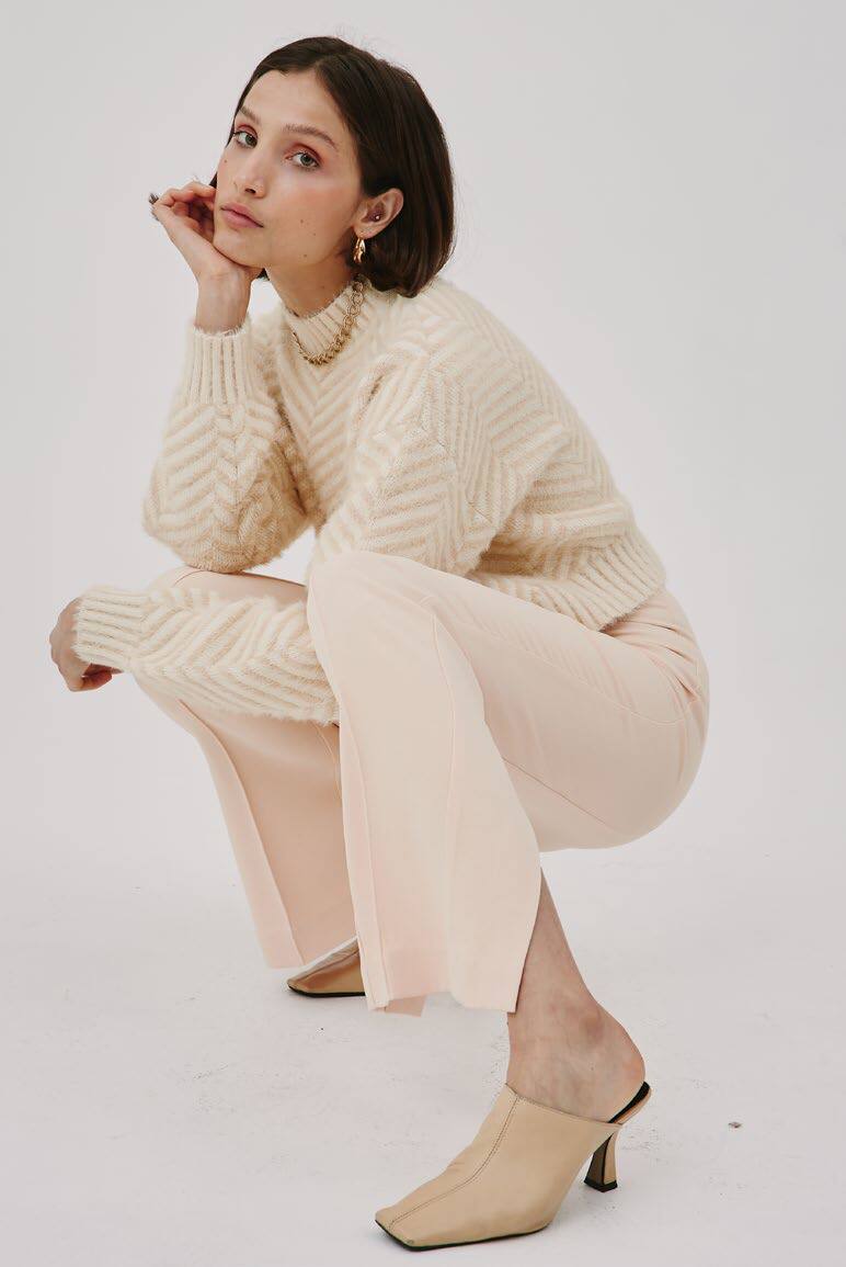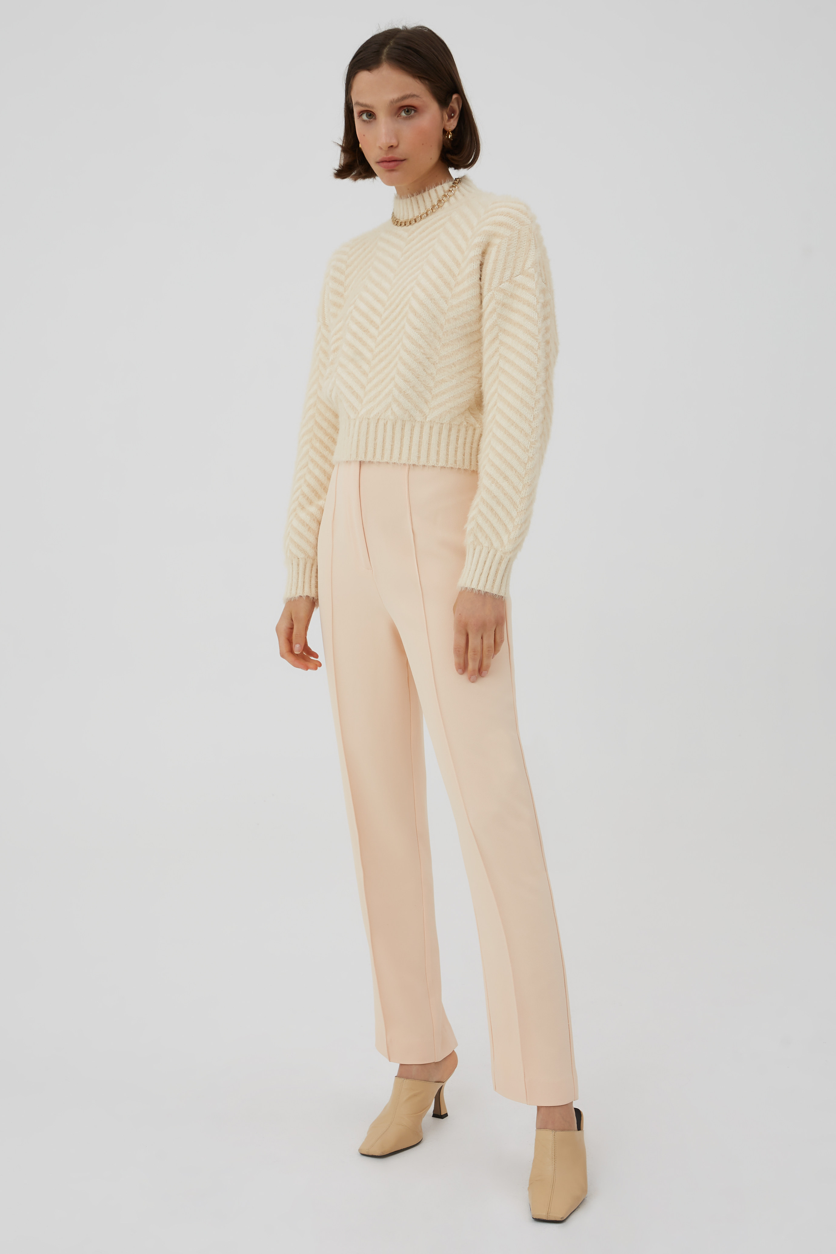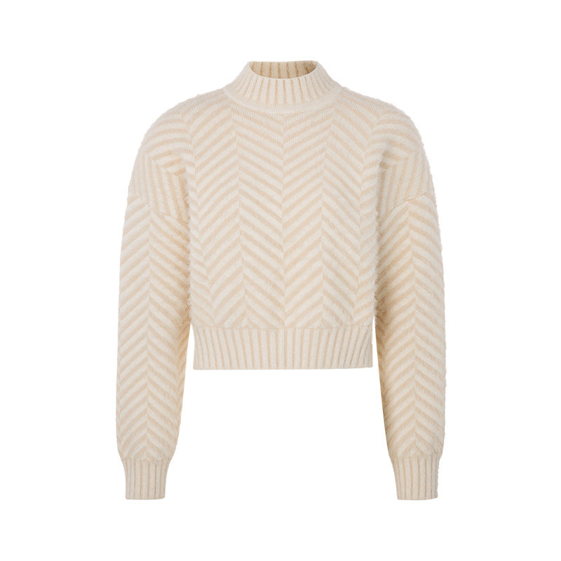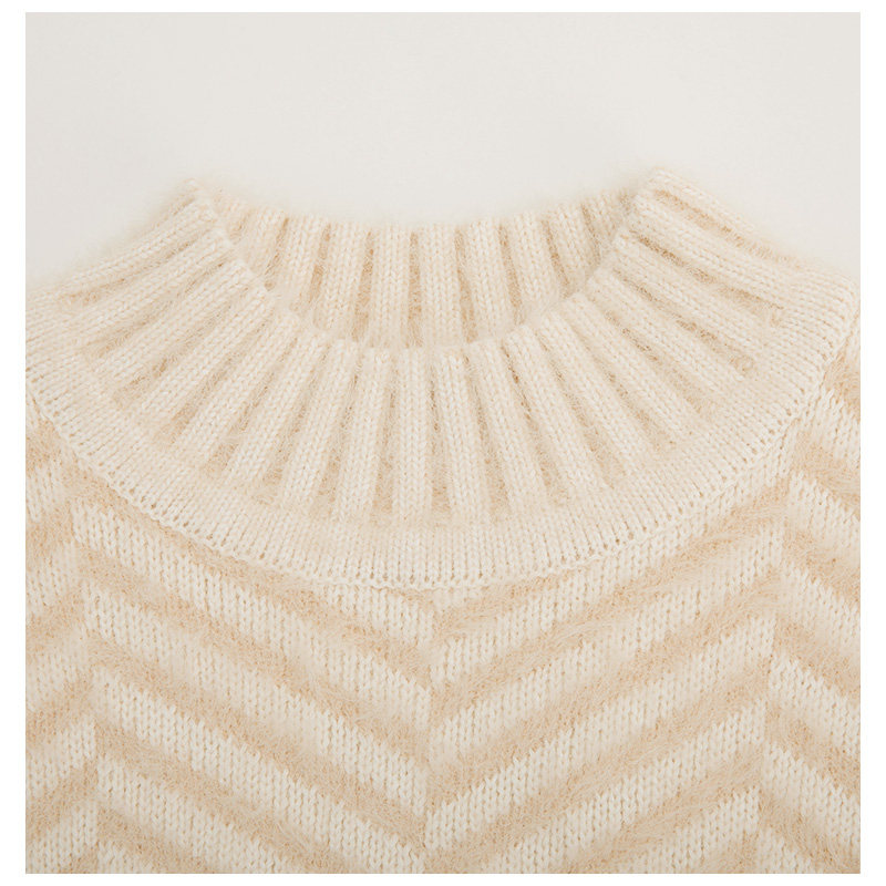C/MEO Классический простой дизайн в виде рыбьей кости, бежевый/белый небольшой женский повседневный свитер с высоким воротником
