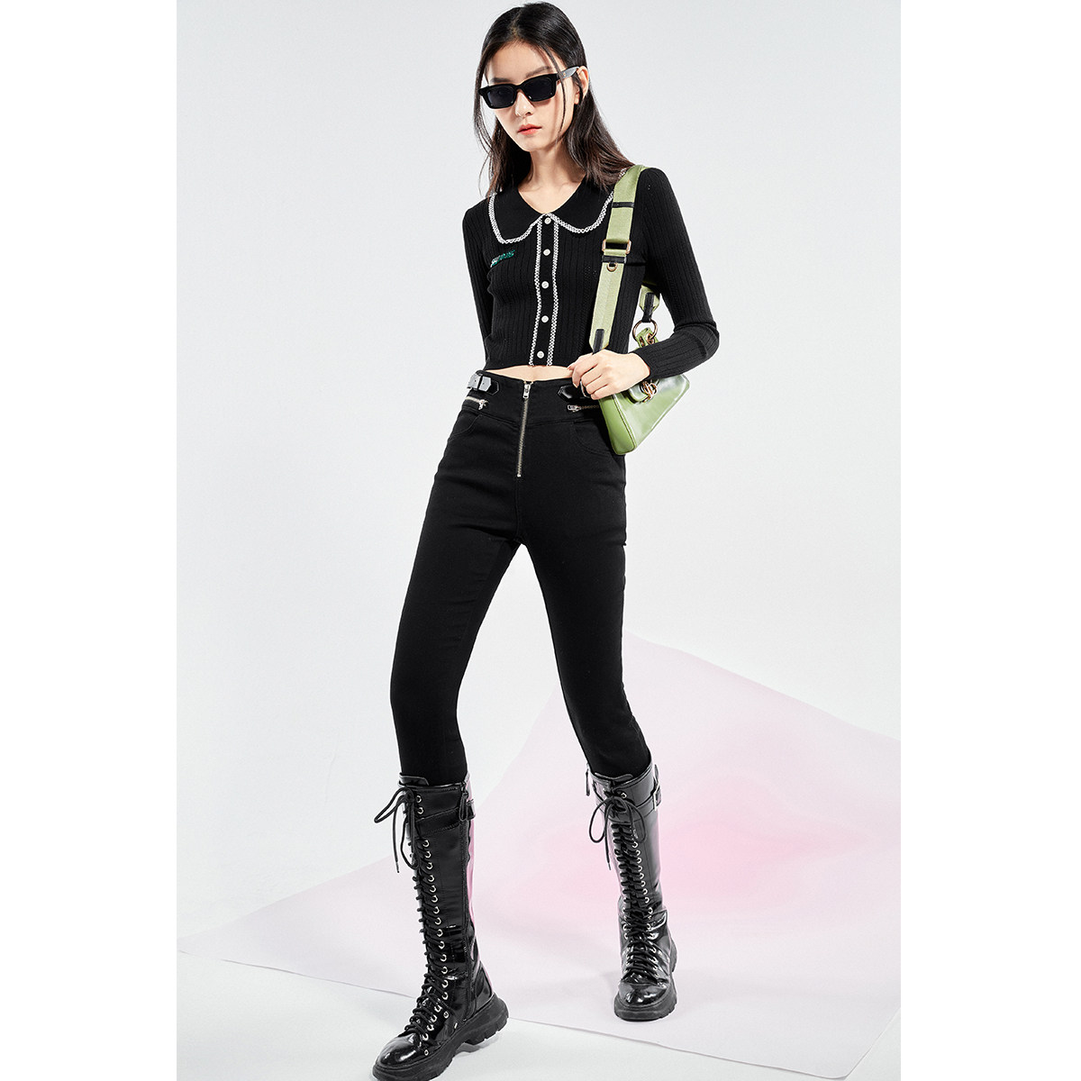 Черный кружевной базовый приятный телу весенний трикотажный свитер, облегающий крой, коллекция 2021, тренд сезона