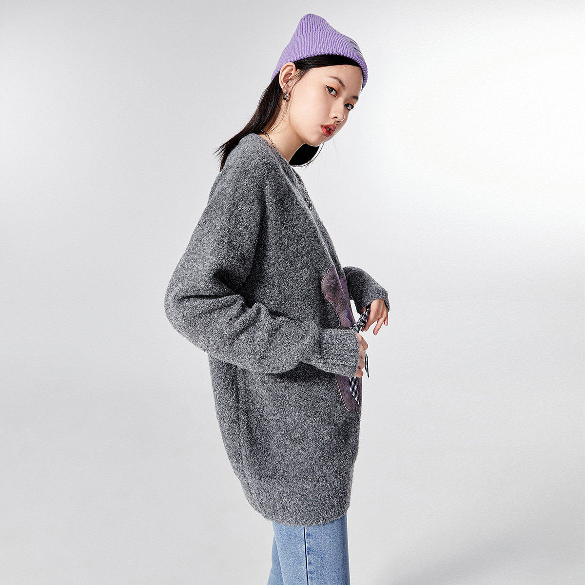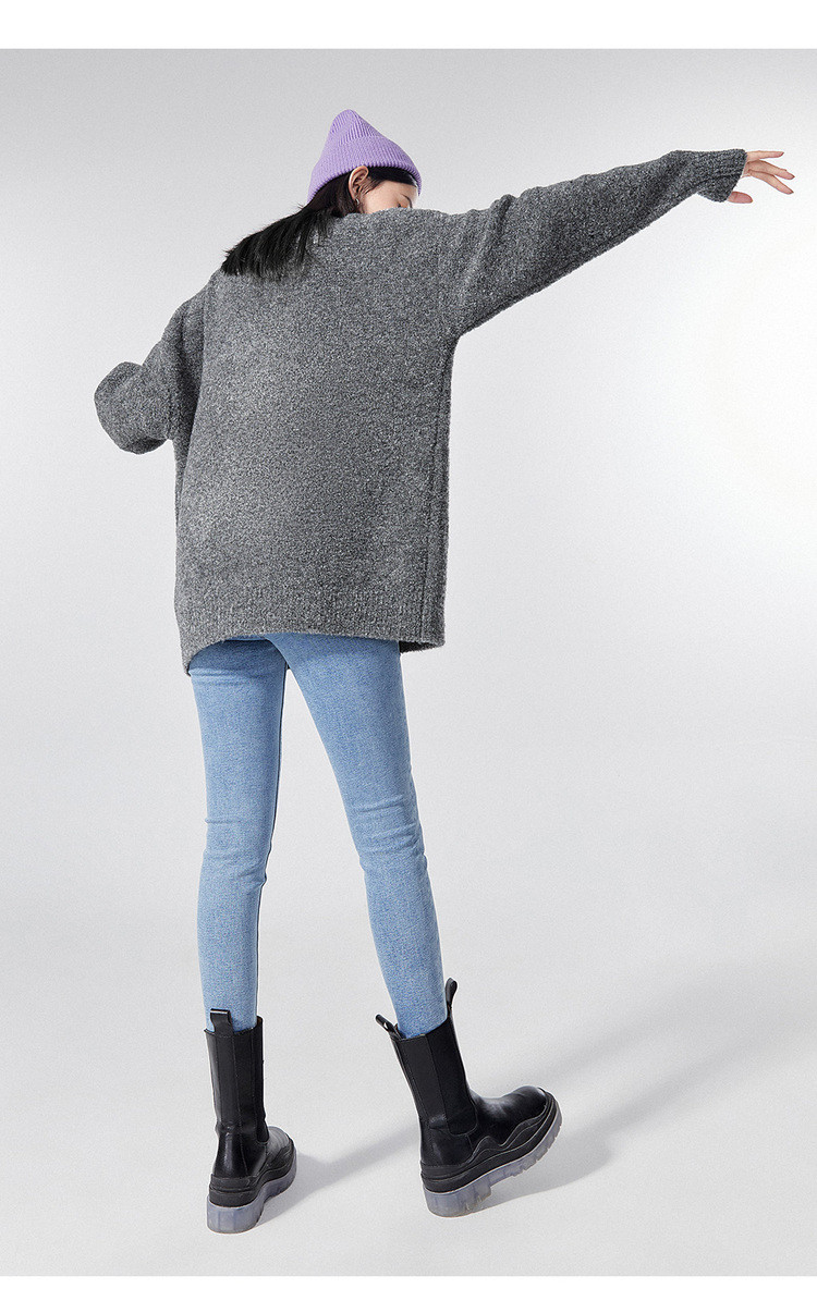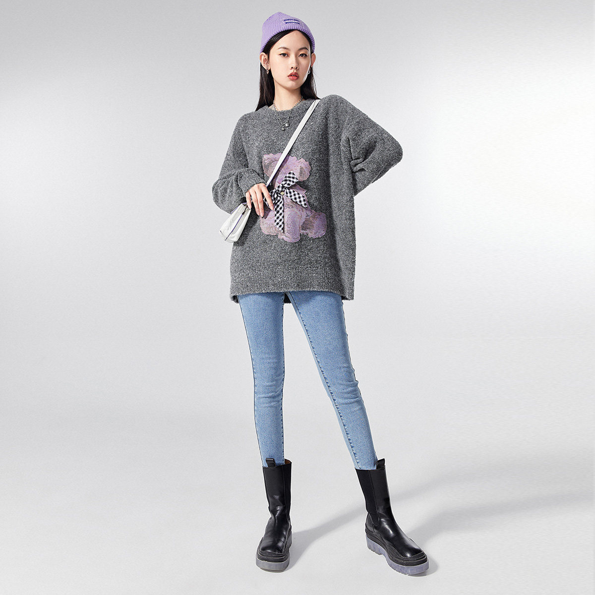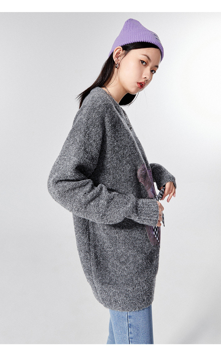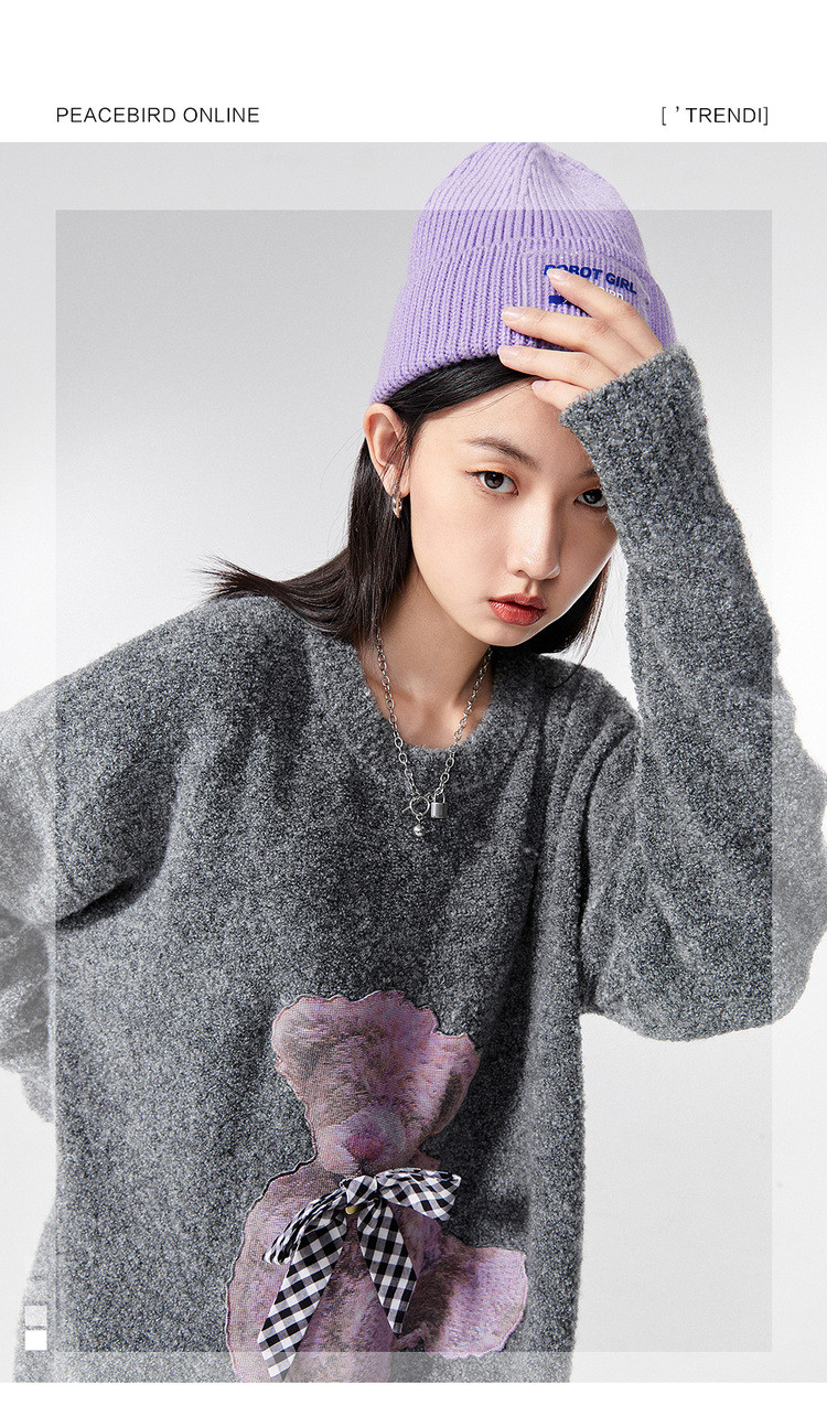 Весенний трикотажный свитер с круглым воротником с бантиком, оверсайз, с медвежатами, коллекция 2021, тренд сезона