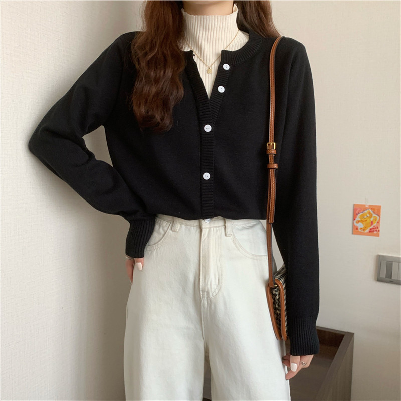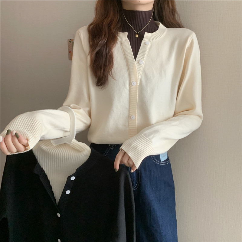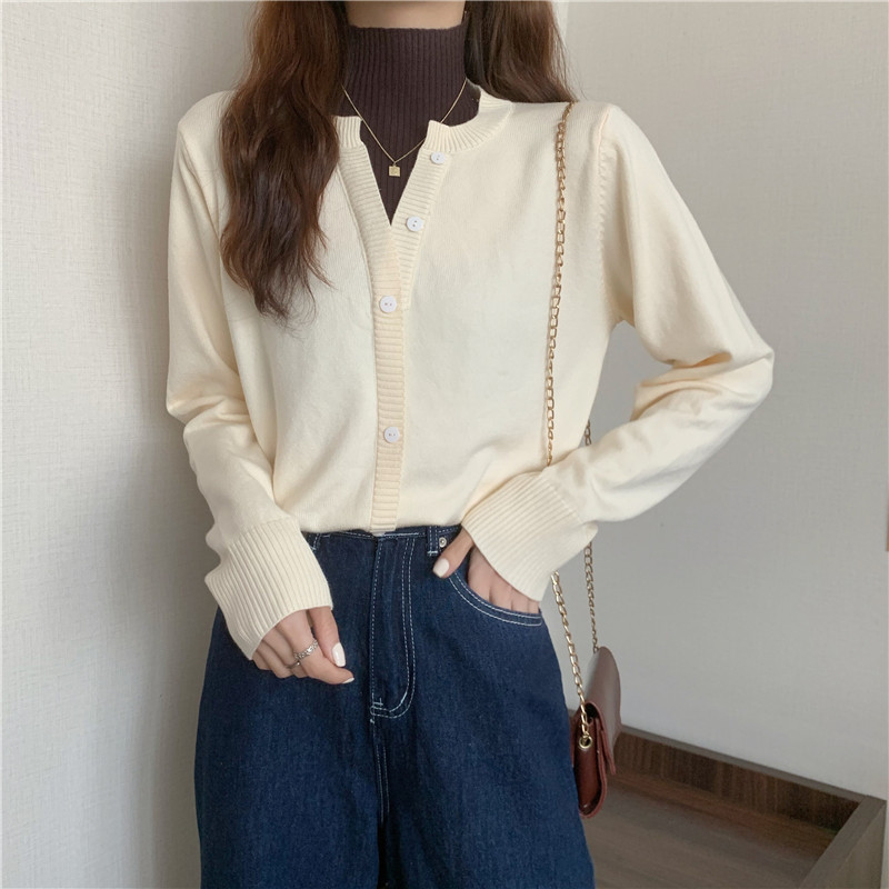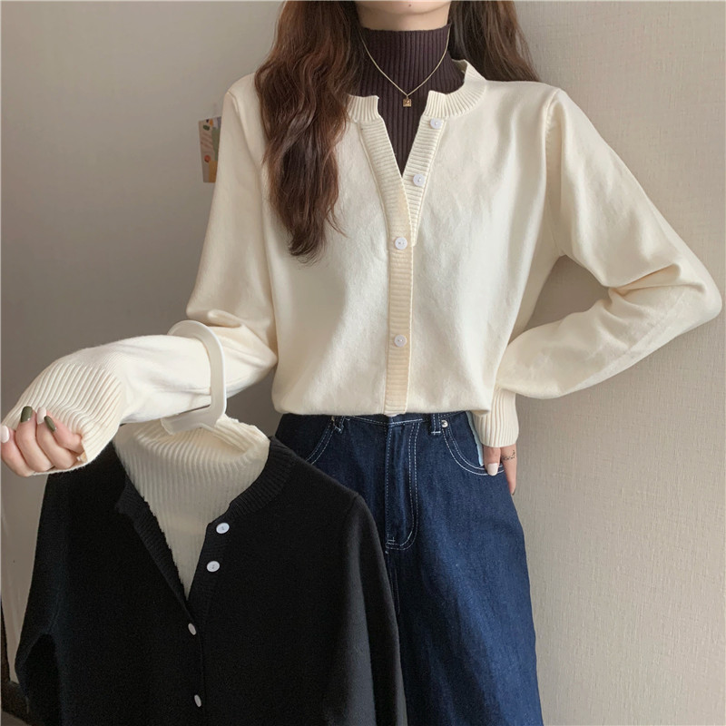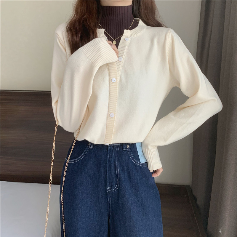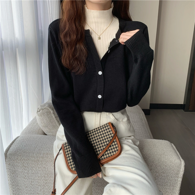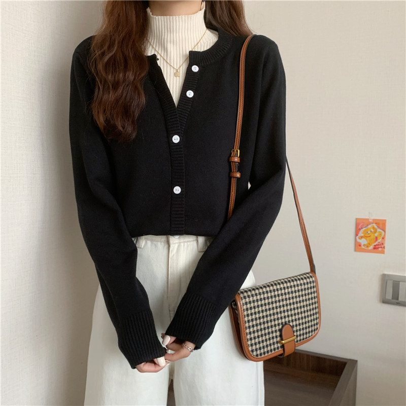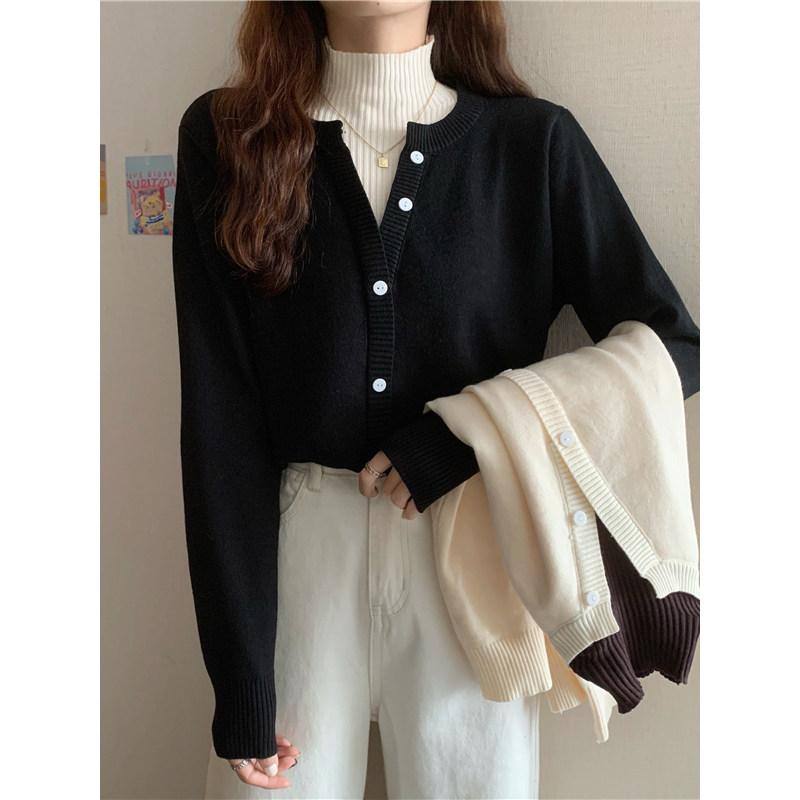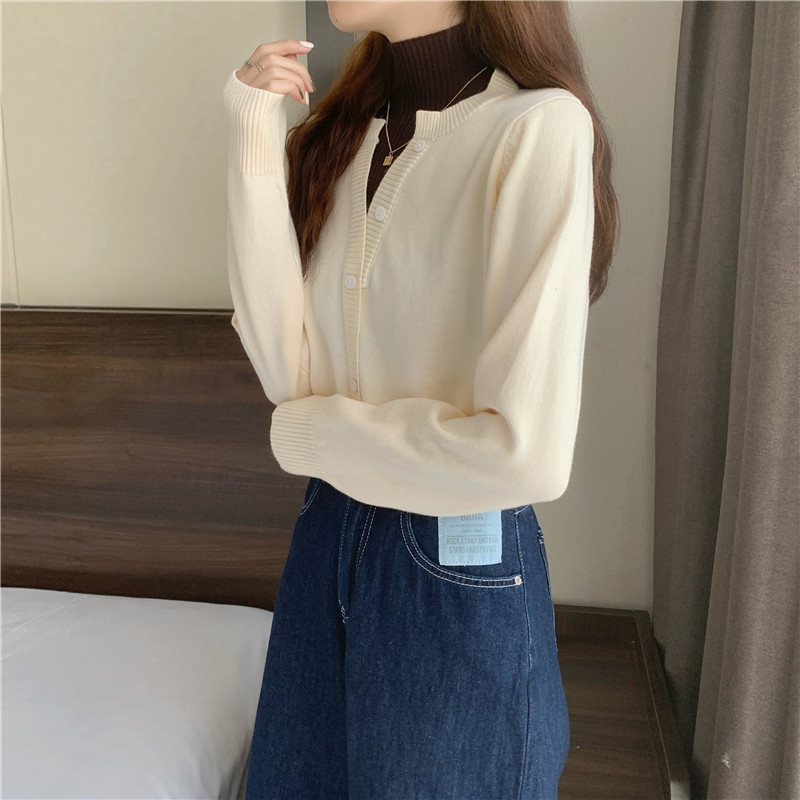 Осенний свитер, базовый комплект, лонгслив, в западном стиле, высокий воротник