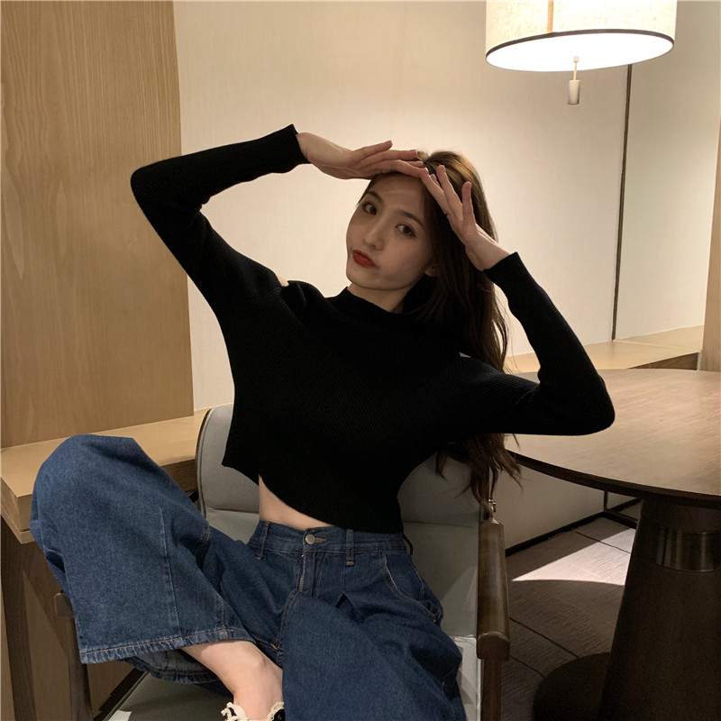 Базовый приятный телу осенний свитер, лонгслив, высокий воротник, облегающий крой