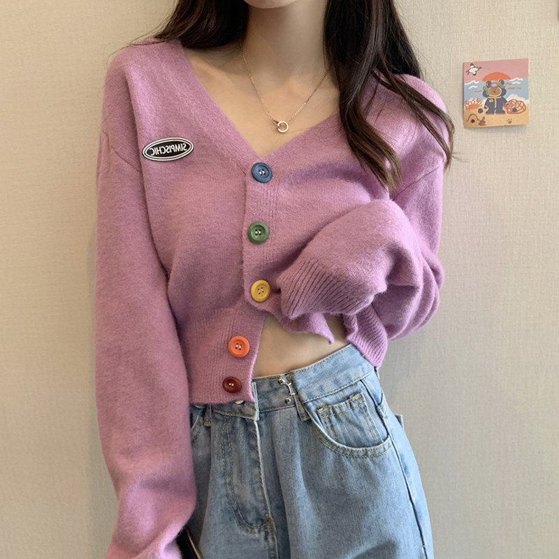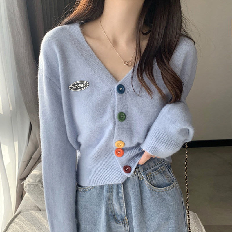 Трикотажный осенний кардиган, куртка, свитер, короткие штаны, высокая талия