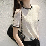 Трикотажный свитер, летние нарукавники, базовая футболка, в стиле Шанель, коллекция 2021, короткий рукав, свободный крой
