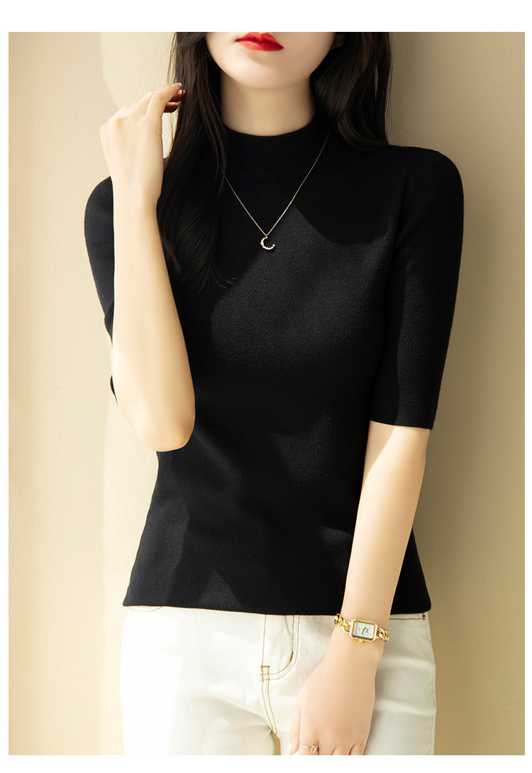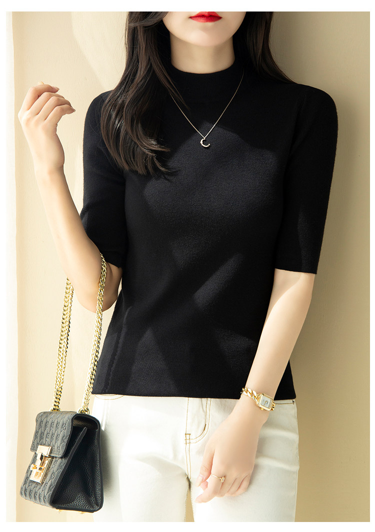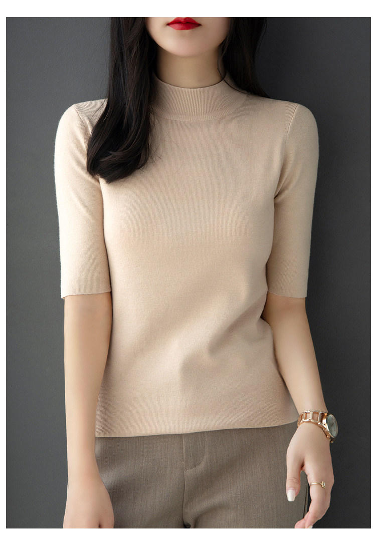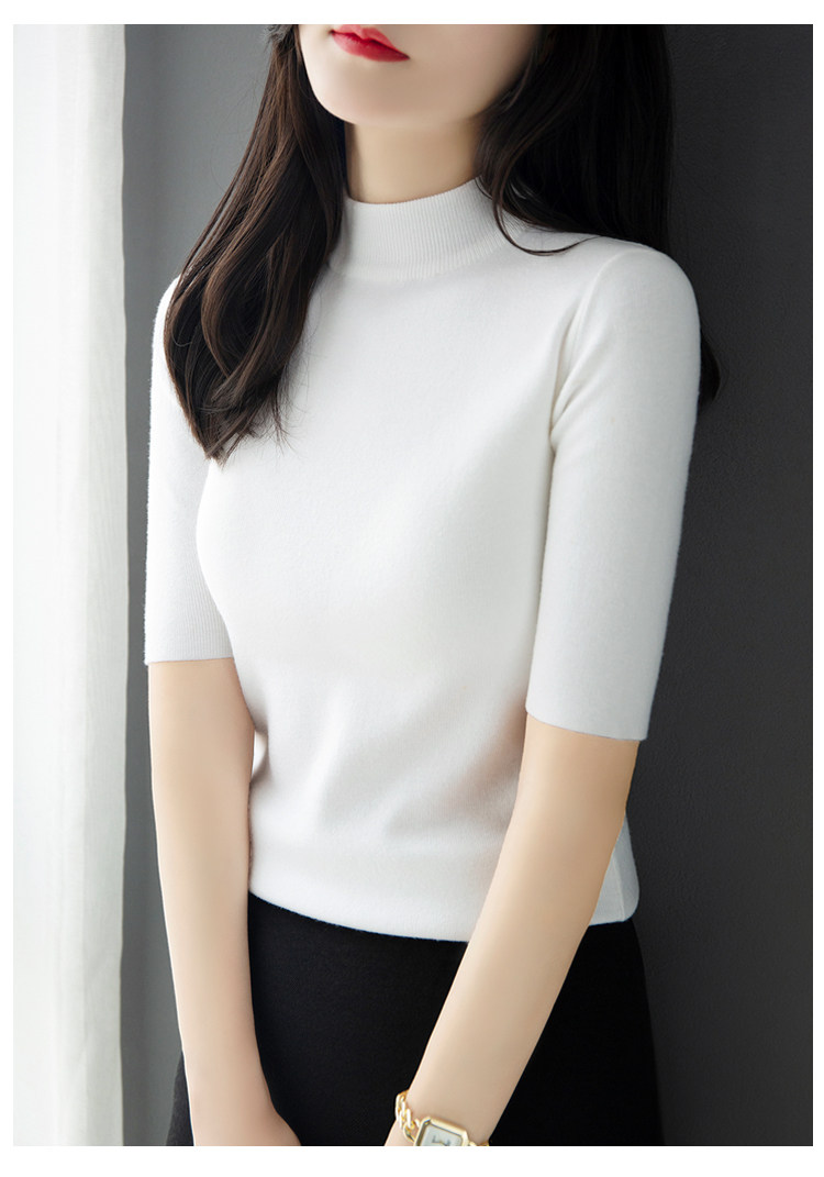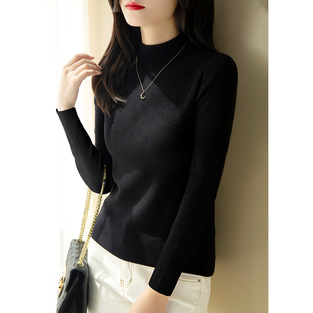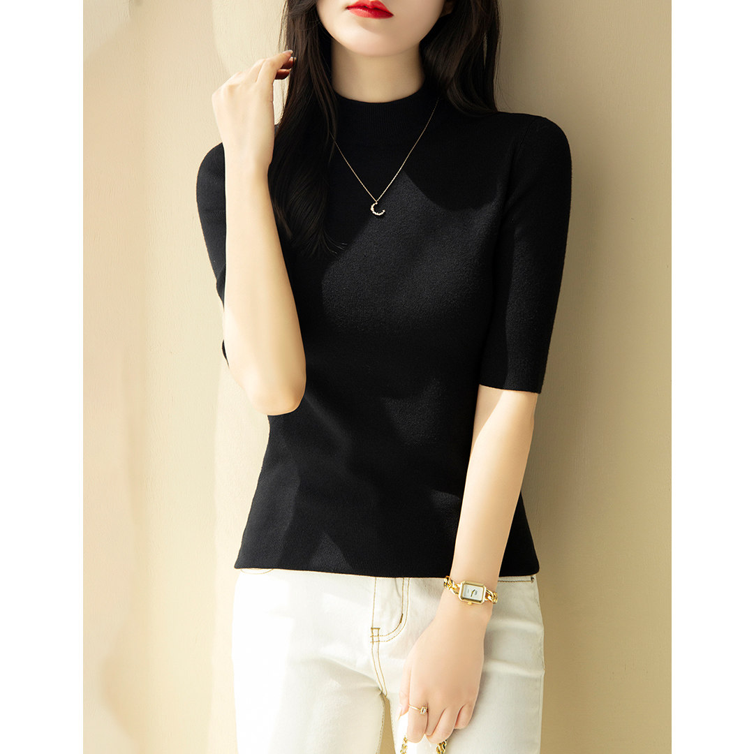 | модные элементы | Чистый цвет, наполовину высокая шея, пять точечных рукава, универсальная рубашка для нижней рубашки, основная марля | |||||||