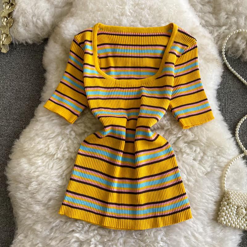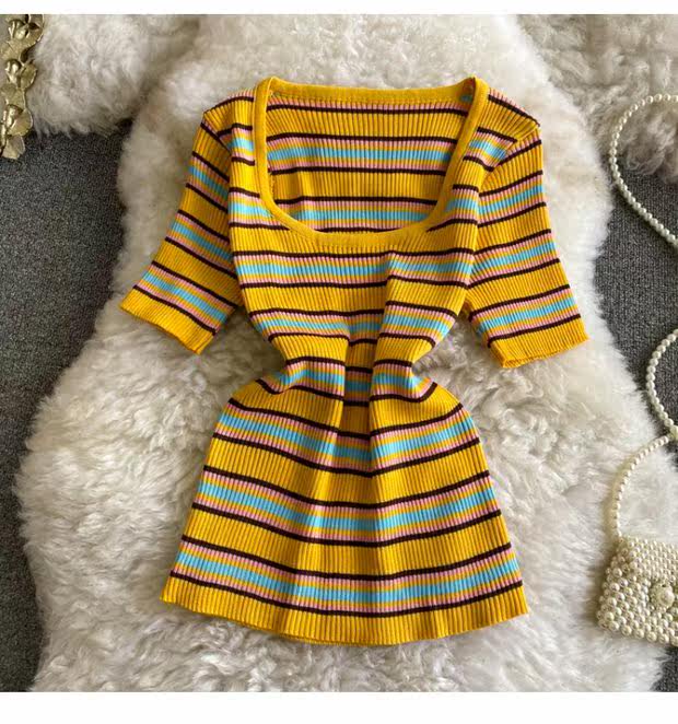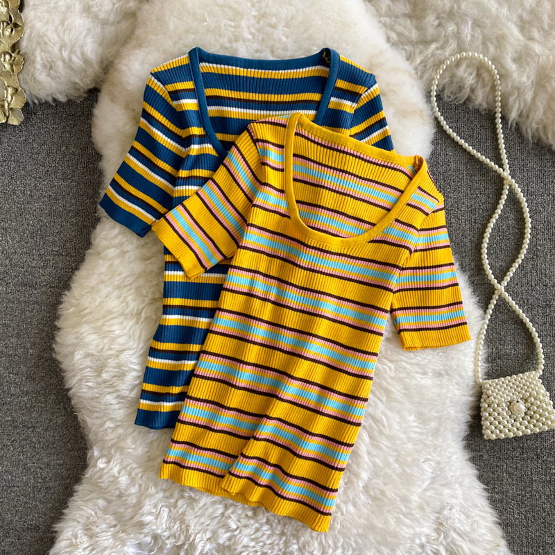 Летняя трикотажная короткая базовая приятная телу брендовая футболка с круглым воротником для школьников и студентов, сезон 2021, облегающий крой, короткий рукав